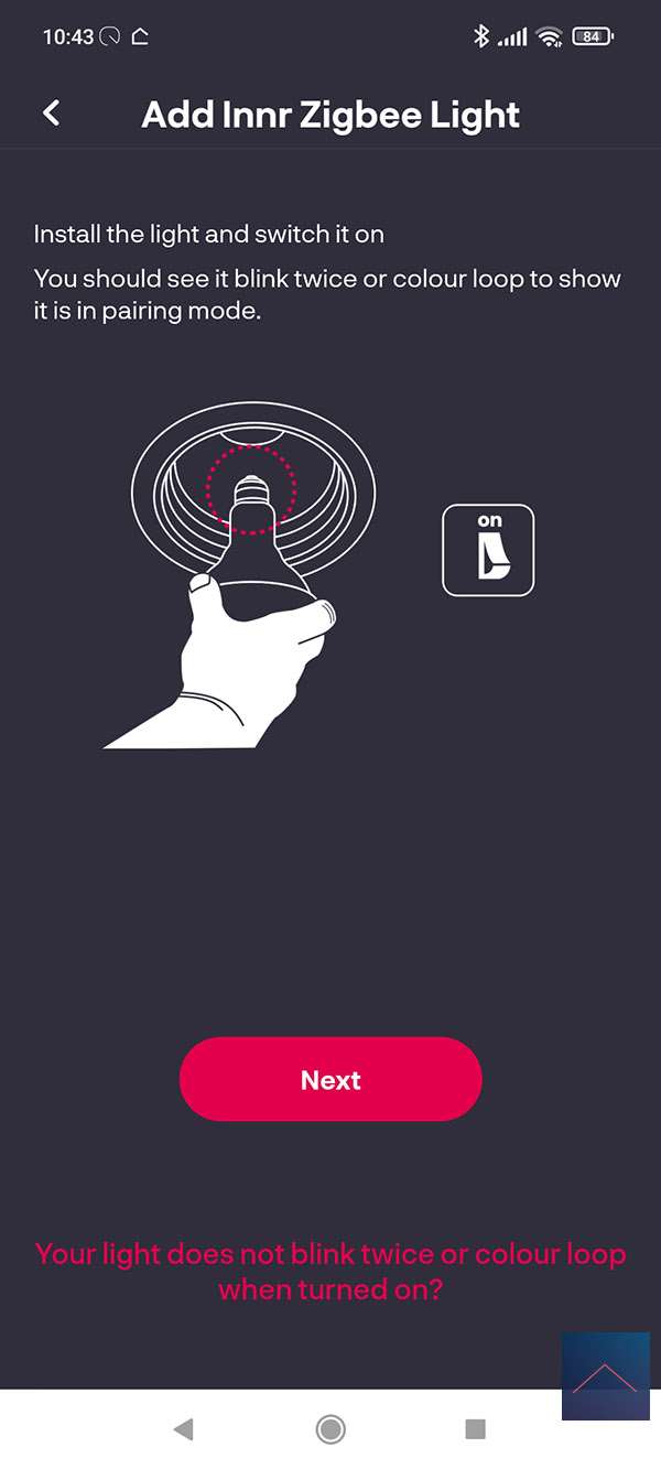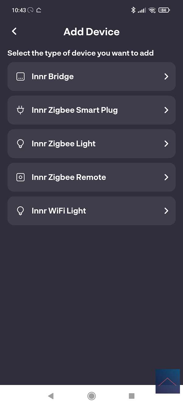 Now we have added 2 INNR devices without any problems. Now let's try another brand to see if it works well. We start with an Ikea LED lamp. So we follow the way of adding again, but this time we don't use the scanner, but we add it manually. After we have supplied the lamp with power and given it a reset (6x on/off), we start searching. After a few seconds, the lamp is found and we can operate it.