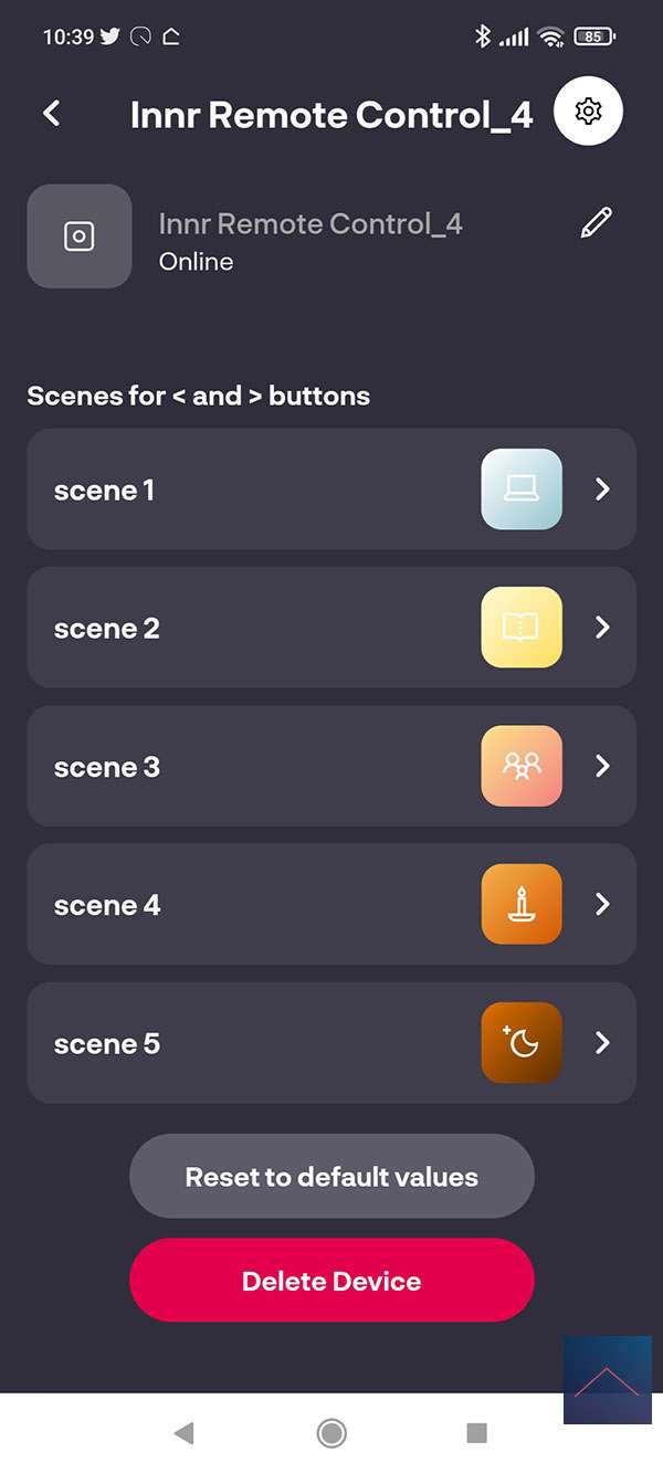 What exactly can you do with this remote? You can turn your lights (of a room) on/off with 1 press on the middle button. You can dim the lamps by using the top and bottom buttons. In addition to these 2 options, you can use the arrows (left/right) to start a routine. You can indicate which routines these are in the APP. We will go into this in more detail in the next chapter.
