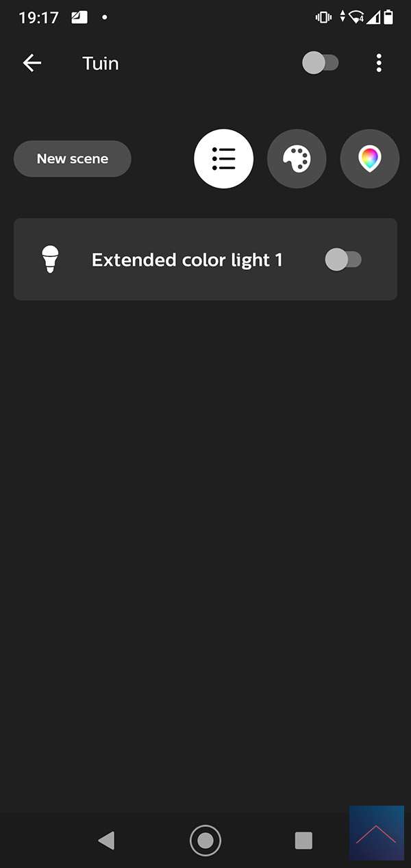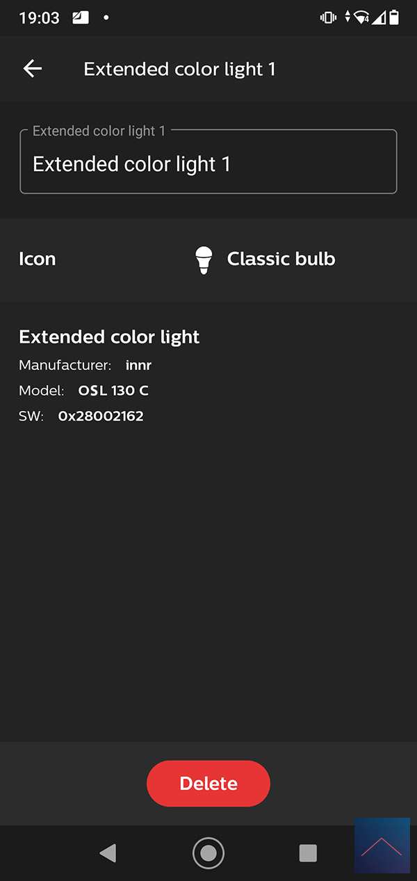 I add it to a room and see that I get an on/off switch and can determine the dim level. I can also give the lamp all the colors of the rainbow. I can also only change the white led.
