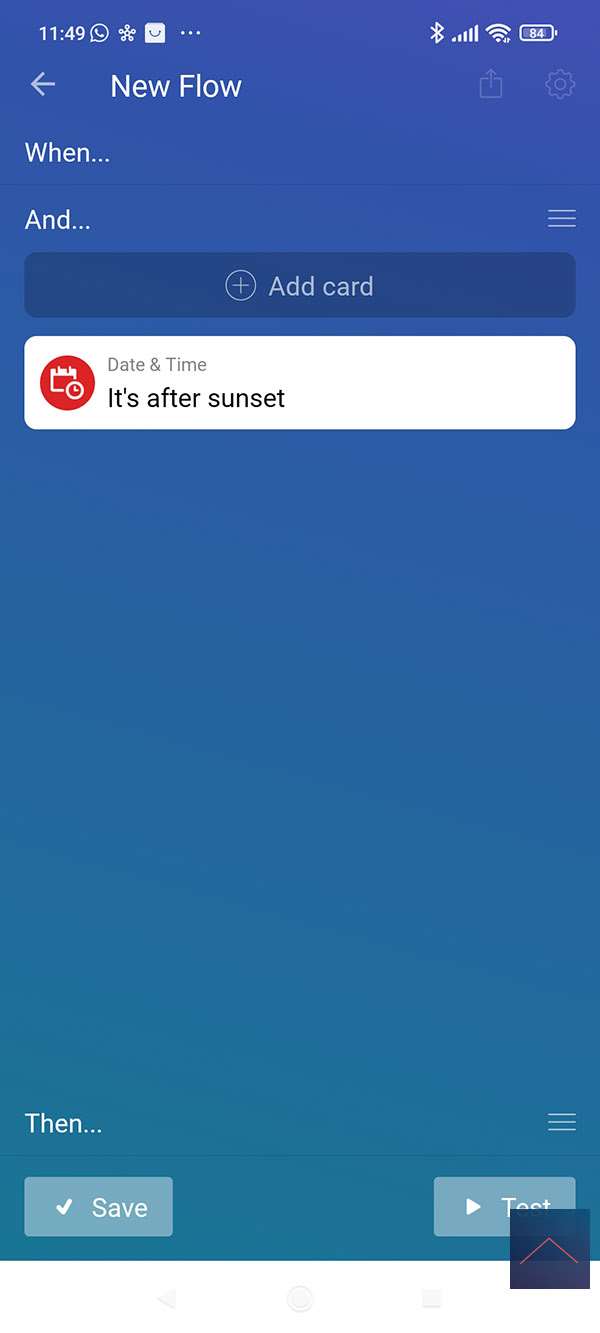 We make sure that when the last person is away from home that the lamp is switched on. In this way it seems as if we are at home. To ensure that the lamp does not come on during the day, we add a rule to the "and" that this is only allowed if it is after sunset.