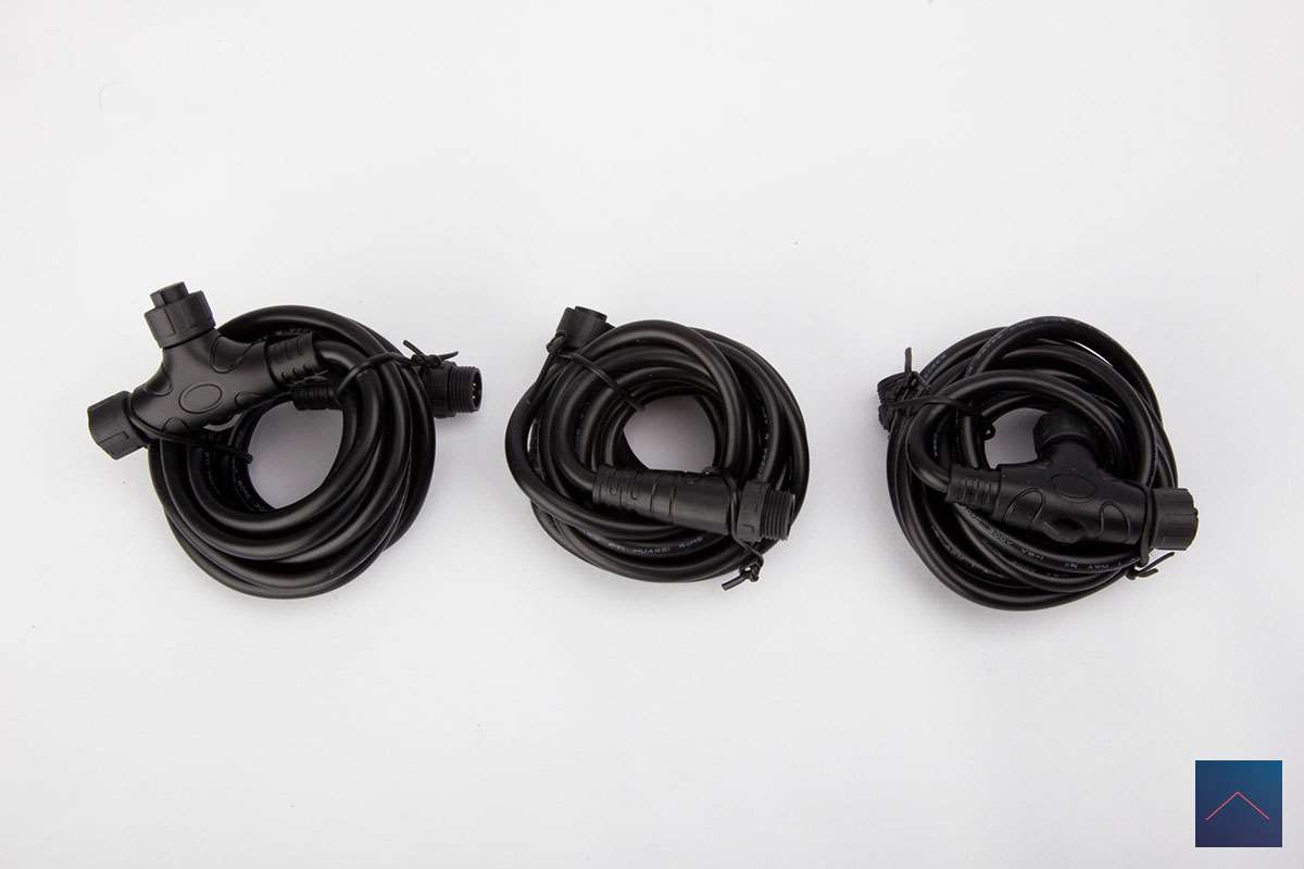 The lamps are mutually connected by a smart system that you can tighten tightly. The last lamp can be placed at about 9 meters from the socket. You also have 30 cm from the main wire to the pole, so you can dig the main cable well into the ground. Very safe, if you put a shovel in it anyway, you are not immediately under power because the lamps are 24V.