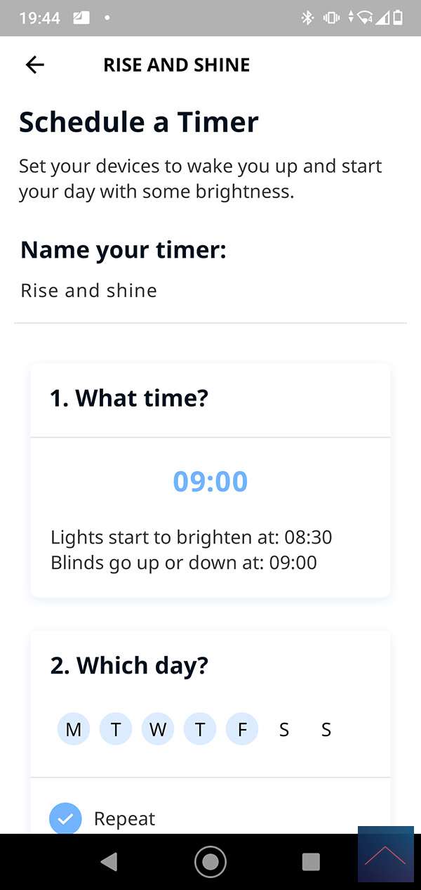 It would be nice when the sun goes down for this lamp to be turned on. You can control this with the timer function using the wake up light function.