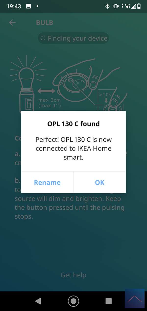 We start by logging into the Ikea APP and going to settings (radar icon) and then to "manage lighting". We then press the plus sign and then LED lamp. Ikea lamps must always be connected via a remote control (or other device). In our case, we select the remote control and press next. Now we have to turn on the lamp and hold the button on the remote control inside for 10 seconds. I see the lamp flashing and that means it has been found. It will also find it in the APP afterwards and I can operate it.