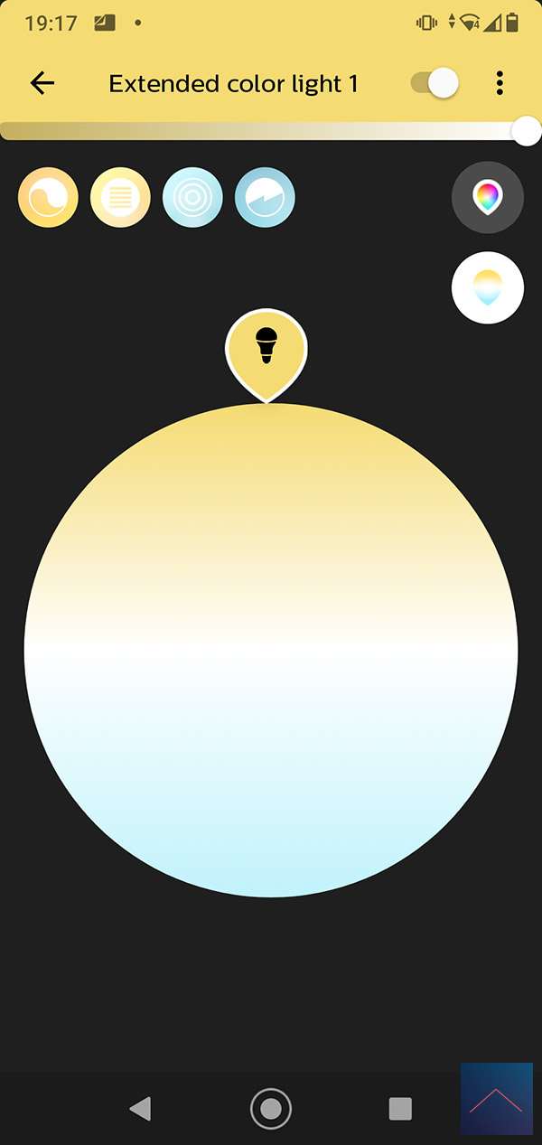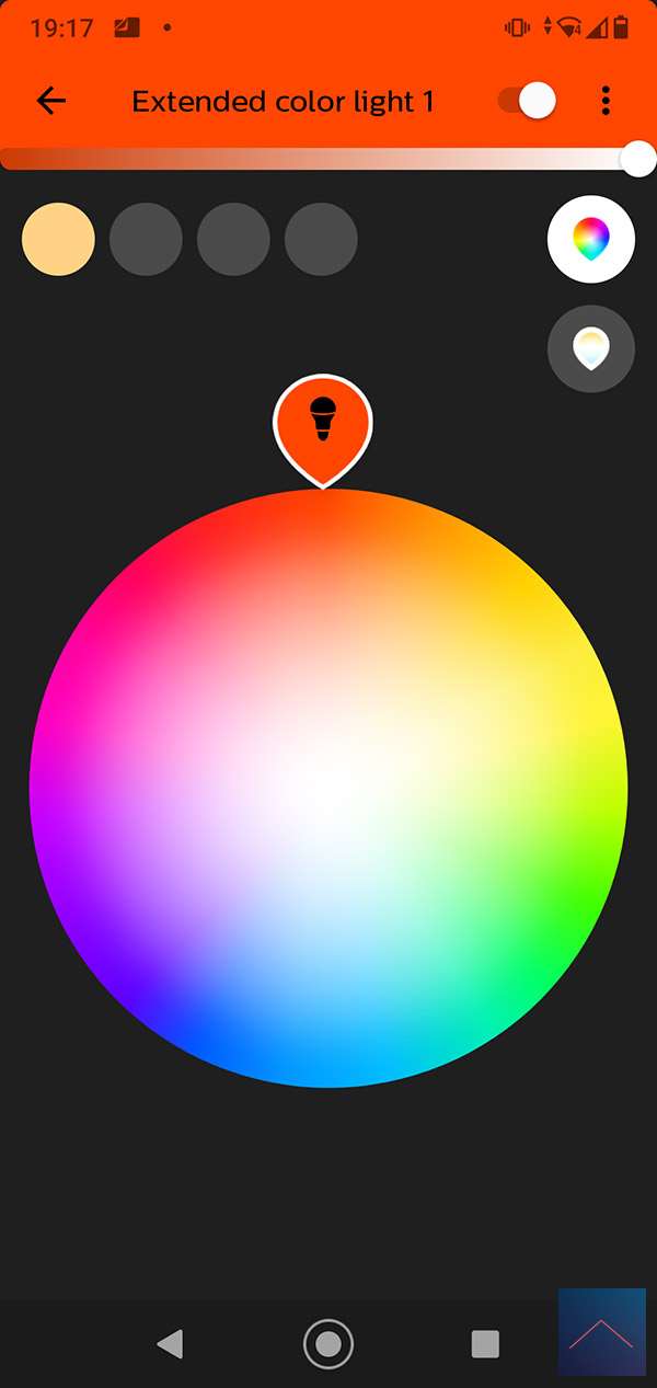 I add it to a room and see that I get an on/ off switch and can determine the dim level. I can also give the lamp all the colors of the rainbow. I can also only change the white led.