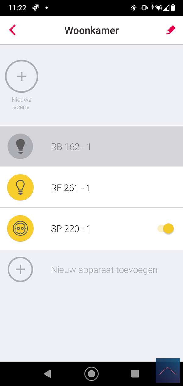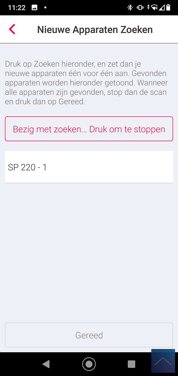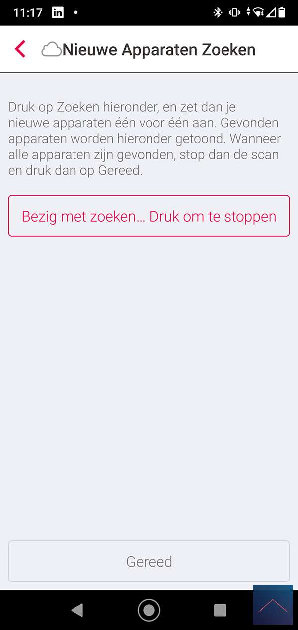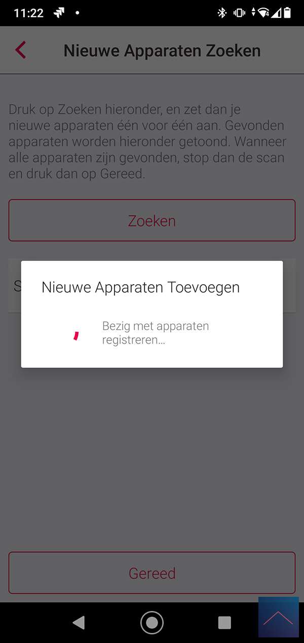 The first Gateway where we will add the plug is that of INNR itself. They have a nice cheap Gateway in their range. You can already buy this for € 19.95. To add the plug we start the APP and go to a room. We then press "add new device" and then search. The APP will search for the intermediate plug. Make sure you hold the button at the top for 6 seconds. The LED will first flash red and then green to indicate it has been added. I also see it appear in the APP and I can press stop. Now I have to press done to really add it.