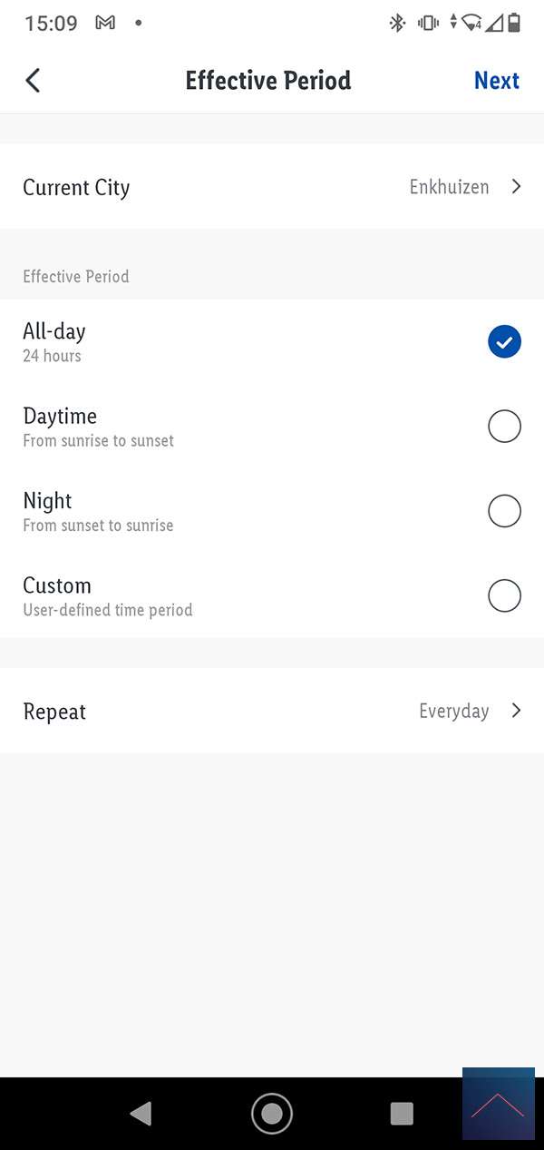 The second condition is the weather. A part of this is also the sunset and sunrise. The 3rd option is on time/day and the last one when the status of a device has changed, so if a lamp y is switched on then you must also switch lamp x on.