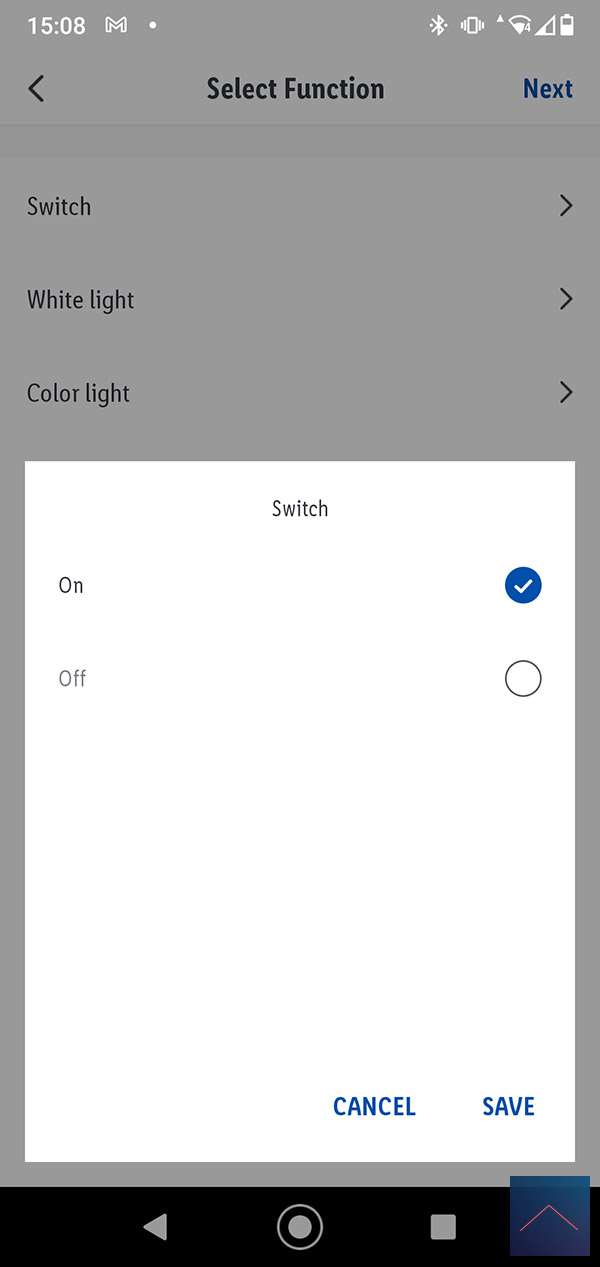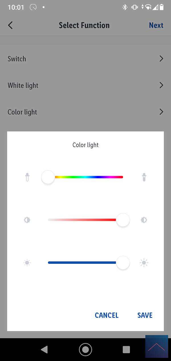 Now comes the question of what the scene should do. We want the lamp to turn on so we select "Run the device" and select the lamp, the color and save the whole.