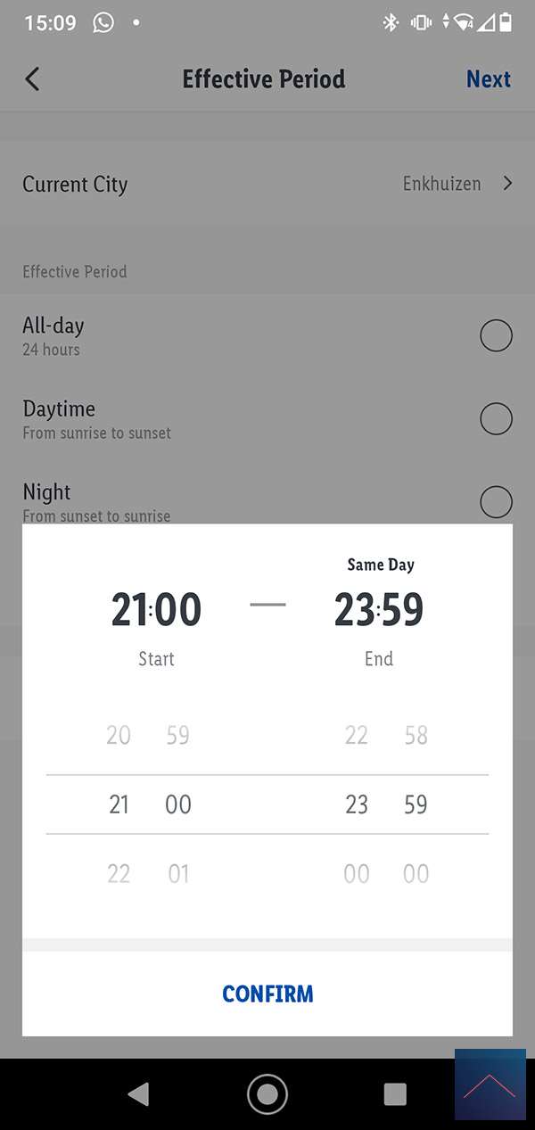 This is, of course, all quite simple. But now we also want this to happen only after 9 pm and that the reading lamp is set to a yellow color. To achieve this, we click on the plus sign next to the condition (reading lamp) and add the time here. But here we run into a limitation of what we want, that if the lamp is turned on sometime after 9 pm, then the scene can run. This option is not available in the condition column. A workaround for this is to use the "Effective period". Here you can specify an end and start time.