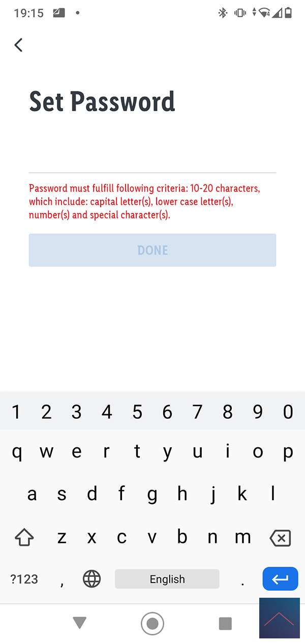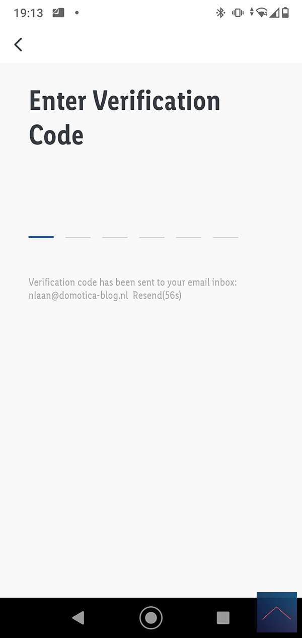 To continue, we will create an account by entering your email address. The APP will send an email with a verification code. So the security has been carefully thought through. Entering your password must also meet certain requirements.