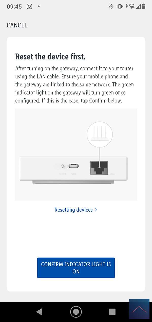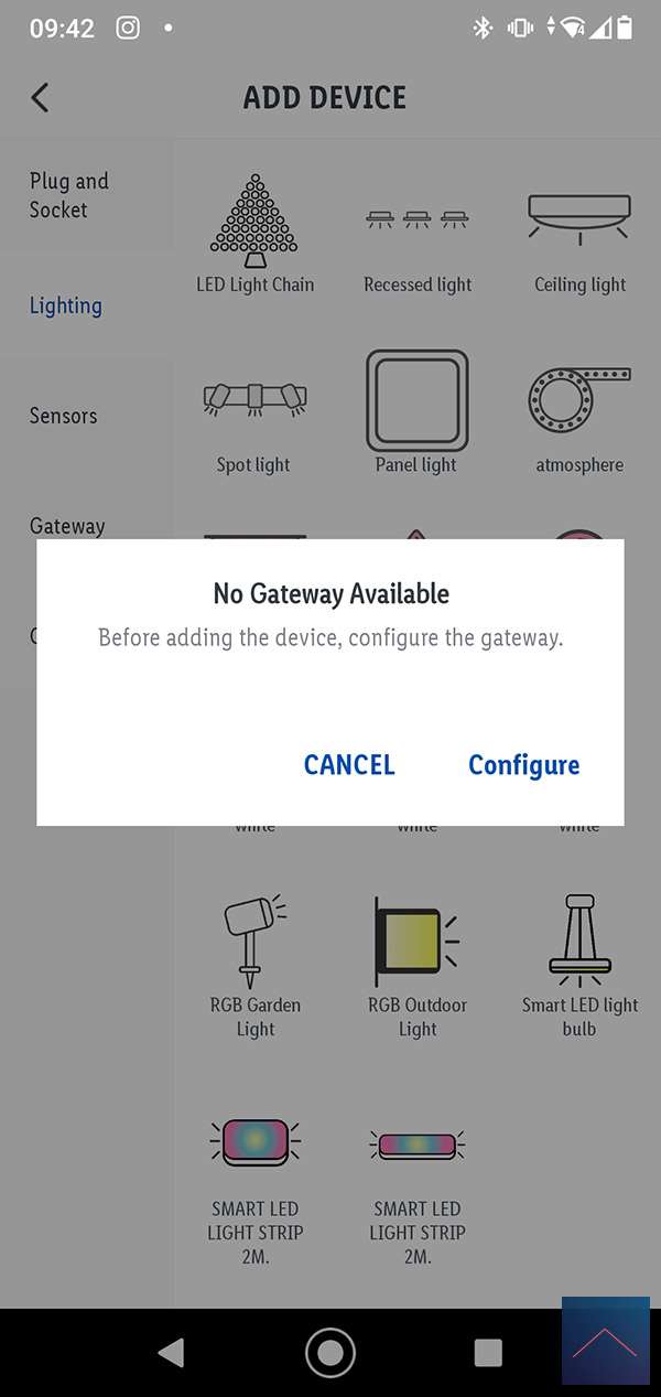 To add the gateway we press the "add device" button on the home. You will then receive an overview of devices that you can add. We choose "gateway" and we get an explanation that the lights should be green. Make sure that you are connected to the same network on your mobile, otherwise it will not find the gateway. It took me quite a while to find him. So be patient.
