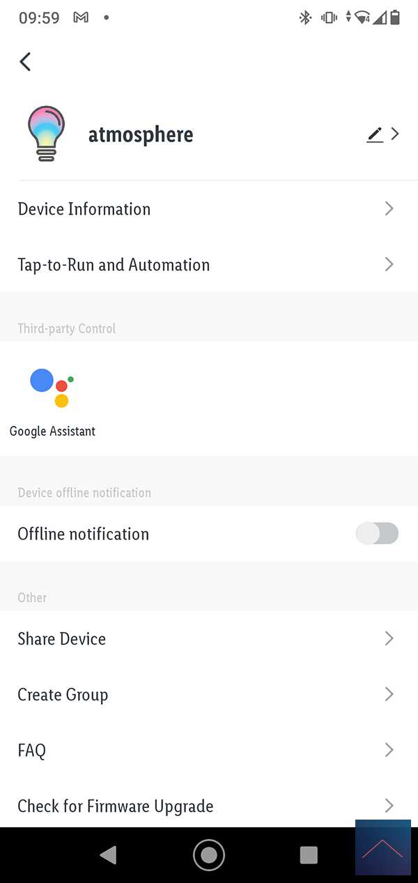 In the configuration (pencil in the top right) you can change the name of the device, send a notification when it is offline, share the device and group it. You will also find the option to upgrade the firmware here.