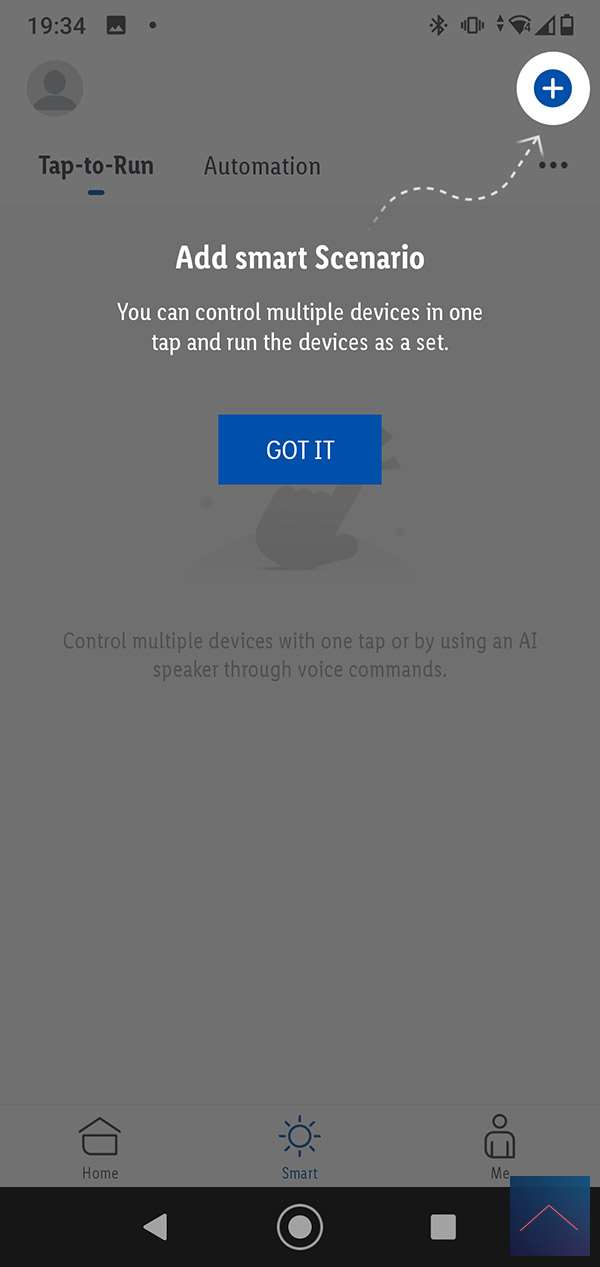 Now we can move on to the next step and that is that the gateway/APP will search for the remote control. Please be patient with this process because it took me a while to find it. When it has been added, you will arrive at the start screen and you can start connecting the lamp(s). This is a bit unclear but you have to click on the icon in the top right corner and then hold down the 2 bottom buttons simultaneously for 5 seconds. Wait for the LED to flash again to proceed to the next step. In this step you select the lamp(s) you want to connect.