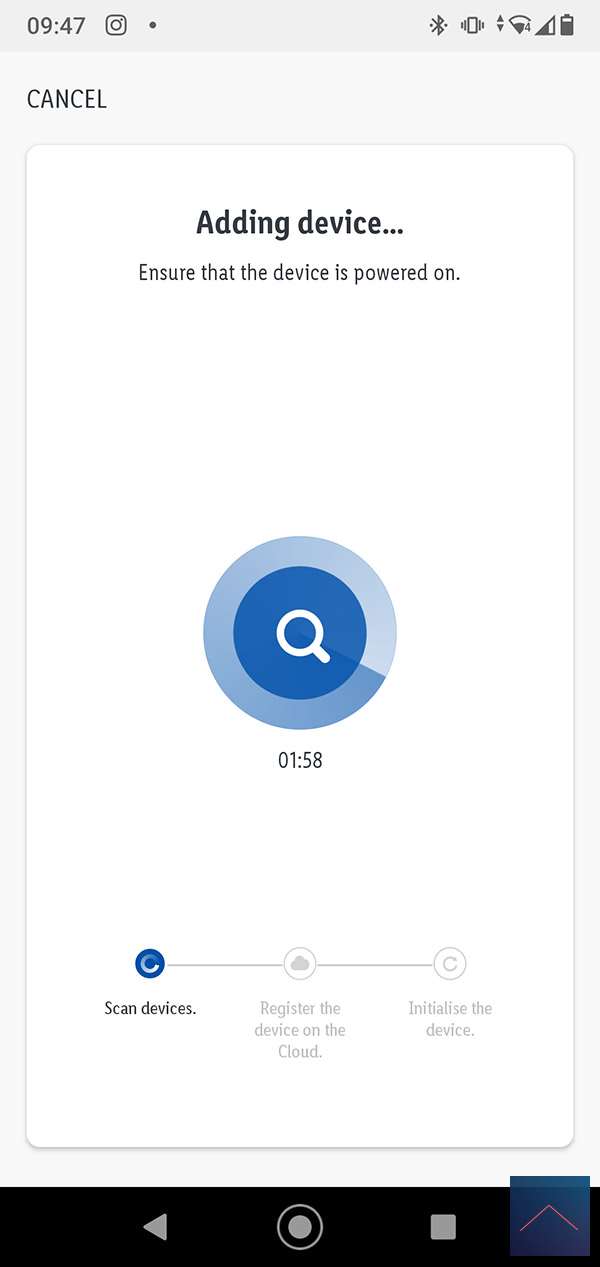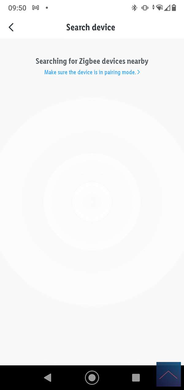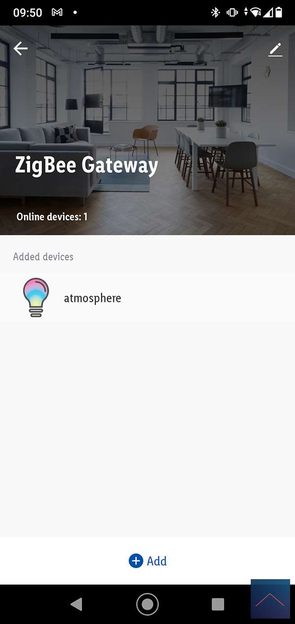 Now that we have the gateway we can start adding the lamps. We press the "add" button and a message comes up that the LED has to flash to add it. We power the lamp and indeed it starts blinking. We now press "next" and the lamp is found immediately and it flashes 1 more time.