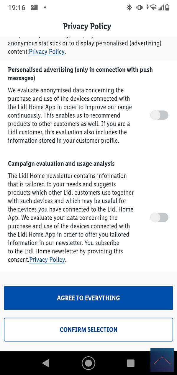 It is also striking that you are asked whether you want to see personalizing advertisements (eg Vodafone, EON and Lidl). We will of course not enable this option. You will also be asked if you want to sign up for the newsletter.