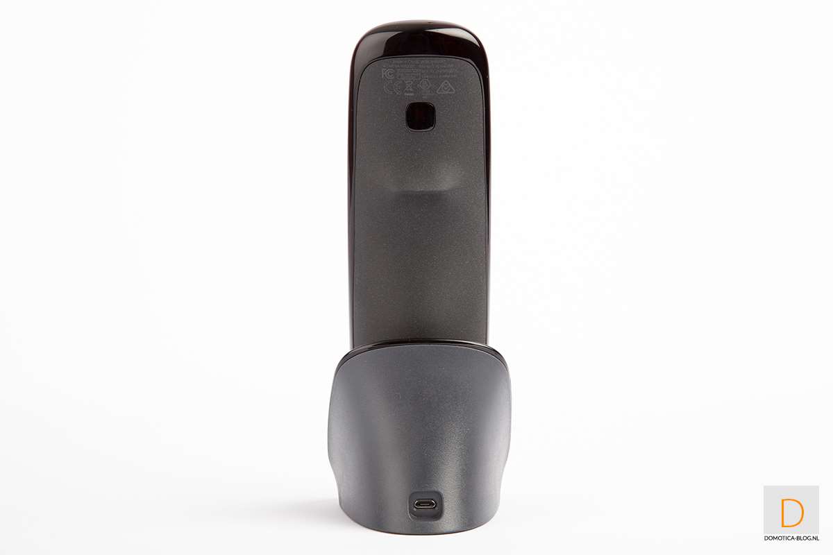 I find the buttons on the bottom very much on the bottom. Because of this you sometimes have to feel where the buttons are with your thumb. You can charge it by putting it in the included stand / base. This works very well.