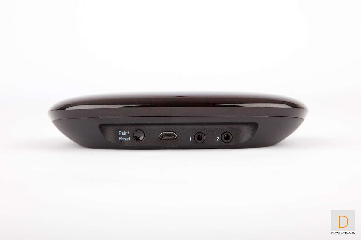 The hub has a USB connection on the back for the power, there is a reset button and 2 IR blasters can be connected.