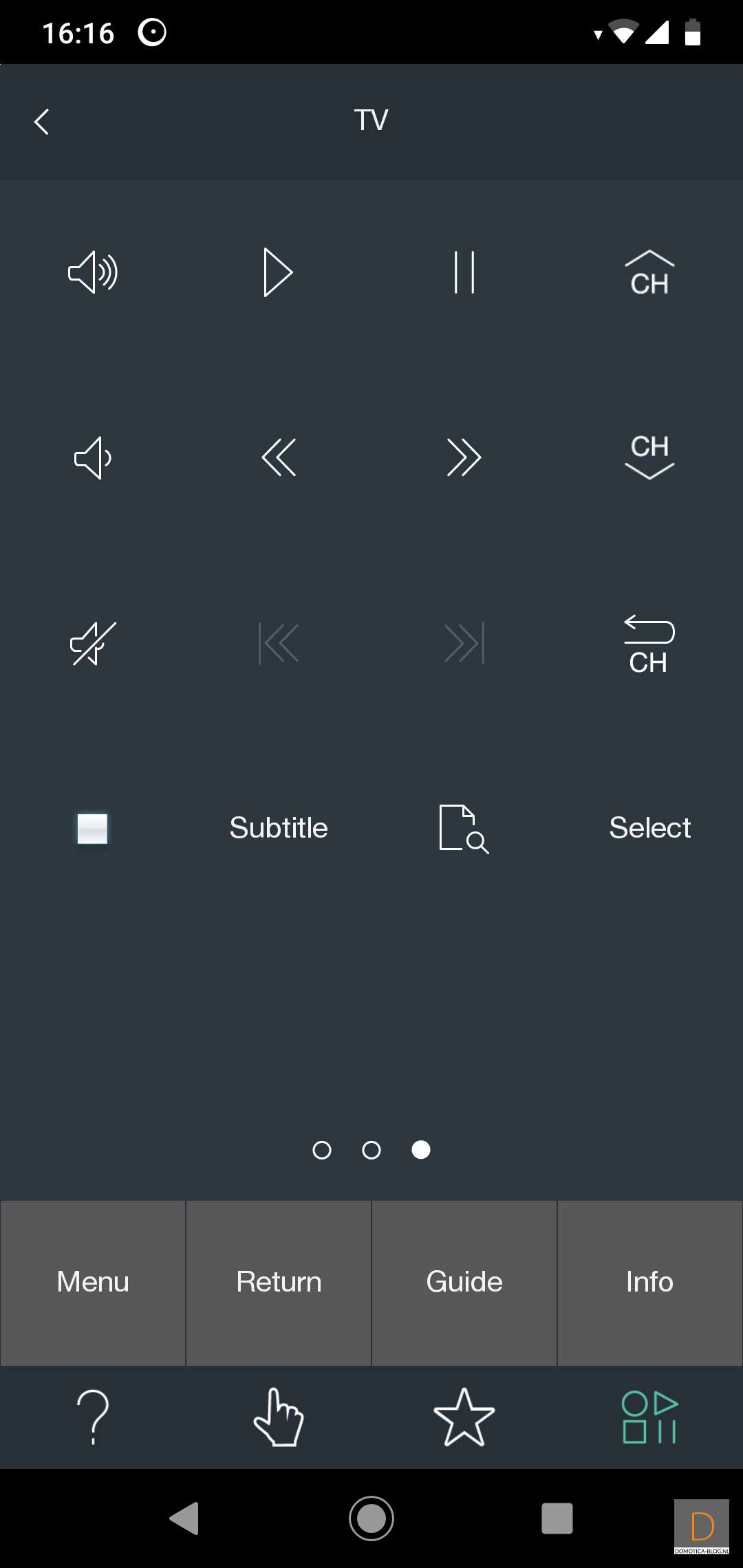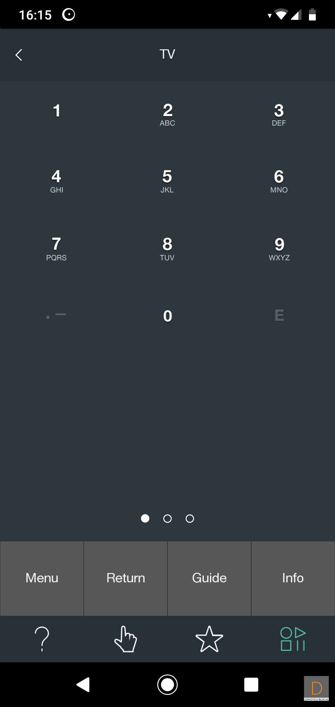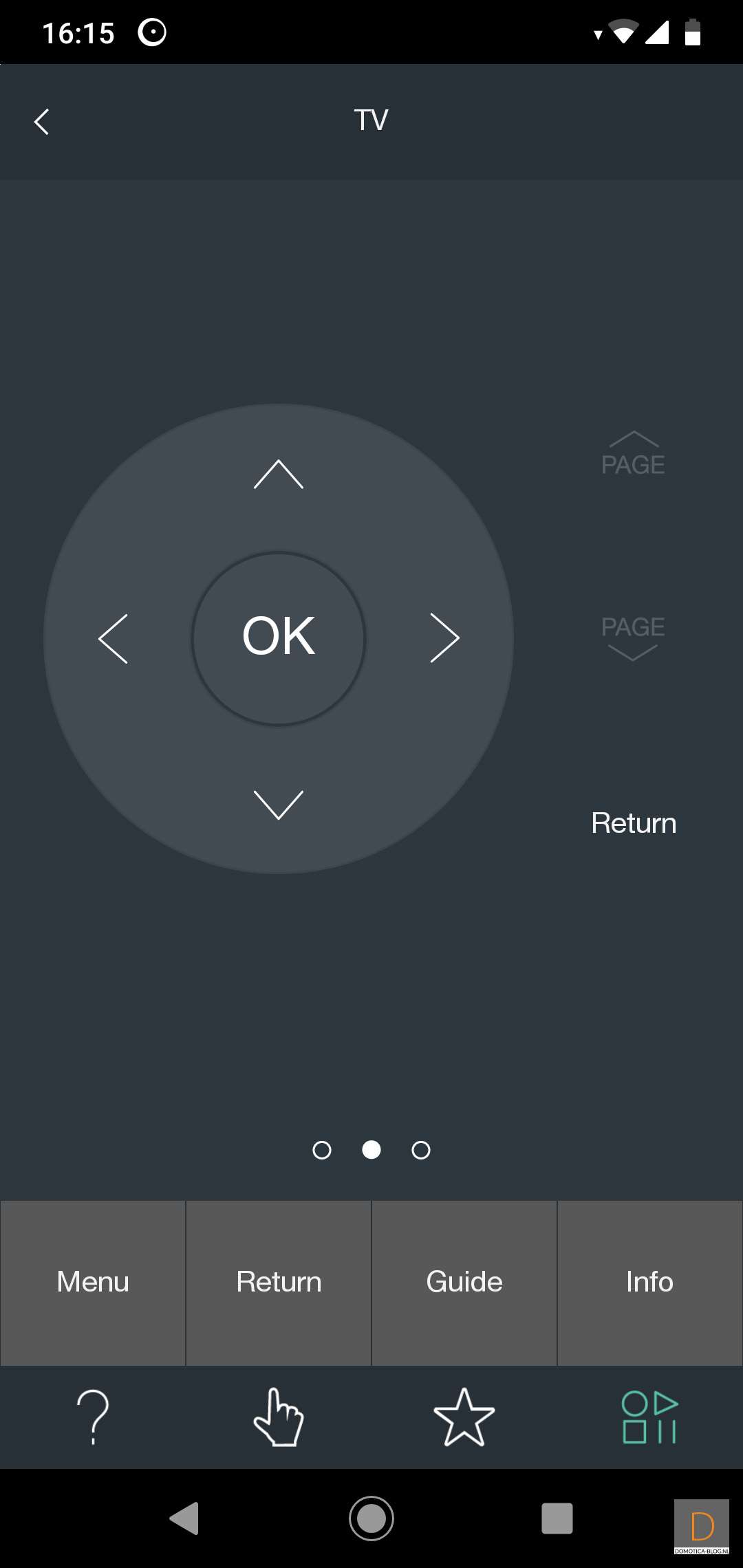After adding I get various screens in the APP, with the channel numbers at the bottom, your forward / back / up / down buttons and a screen with various buttons such as the volume, channel up / down, etc.