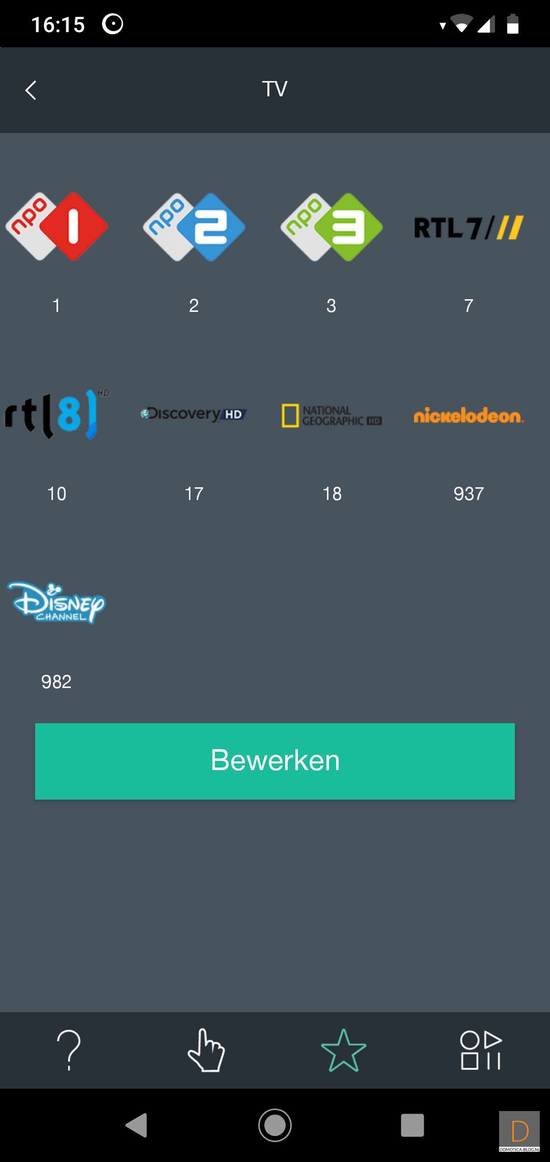 On the remote I see my favorite channels and of course all buttons. You can of course also use the physical buttons to adjust the volume and zap to another channel.