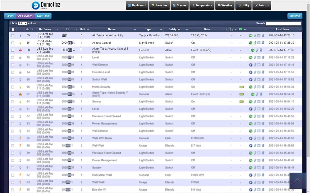 The next system where we will install the sensor is that of Domoticz. This is a free open source smart home system that can run on different hardware. We use an RP2 with an Aeotec USB Z-Wave stick.