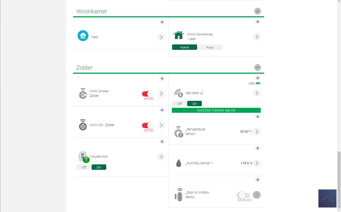 It was then added to the Vera and I see the different sensors appearing with my devices. What is striking is that I also get an extra on/off switch. This does nothing for the rest so you can just ignore it.