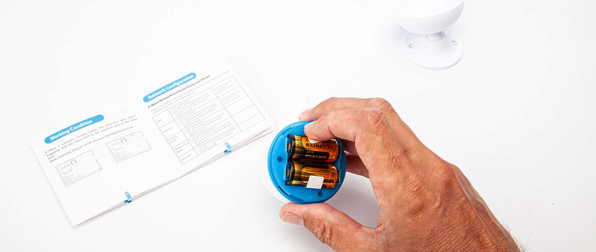As a bonus, you can connect this motion detector via USB to always provide it with power. That saves changing batteries. It can of course also run on batteries. Two CR123A batteries are included.