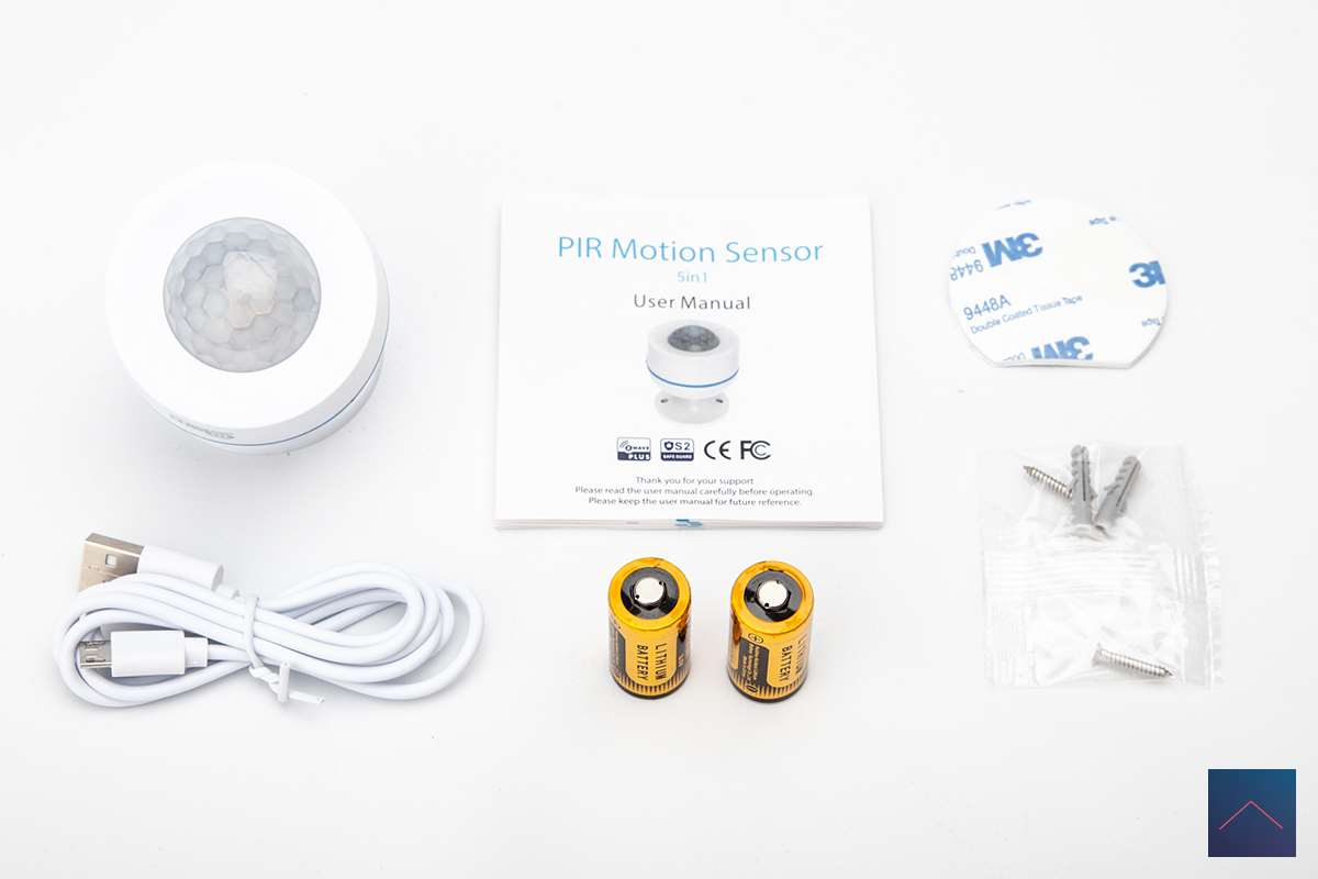 This sensor is for sale for around 35.00 euros, which makes it favorably priced. It is 68 x 56 x 56mm which makes it not the smallest on the market. A foot is included so that you can attach it properly to the wall and turn it in all directions. This foot can be attached with the supplied screws or with the double-sided sticker.