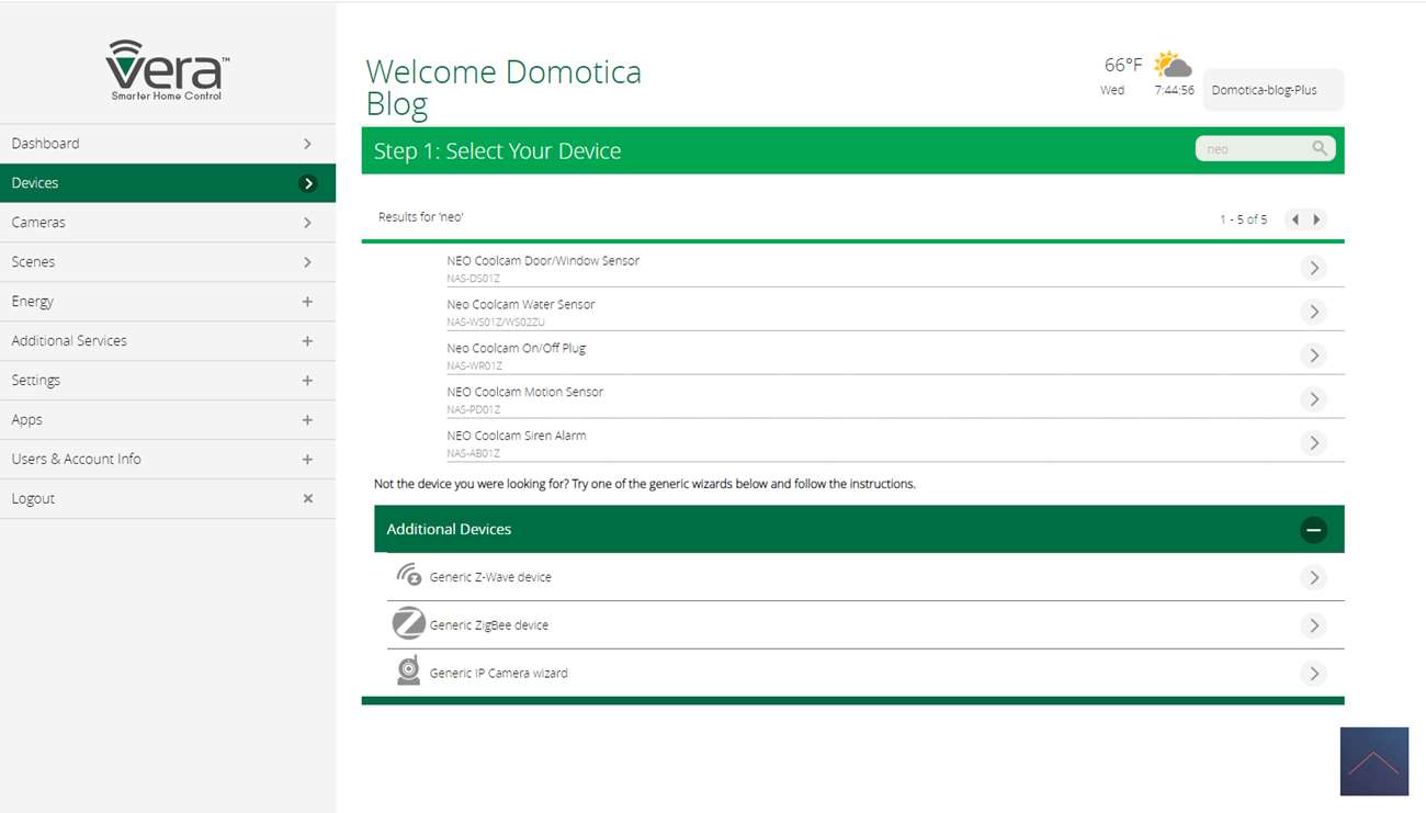 Now we log in to the Vera and go to our devices and click on "add device", now we look for the motion sensor. Unfortunately I can't find it so we'll try to add it as a generic sensor.