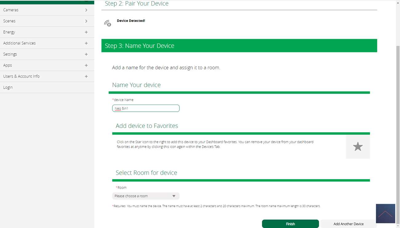 The motion detector is found as an on/off switch. We can change this by going to the device configuration. Enter the following values:
