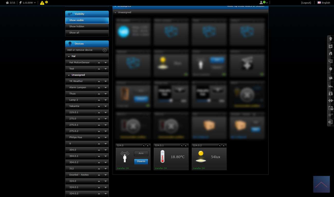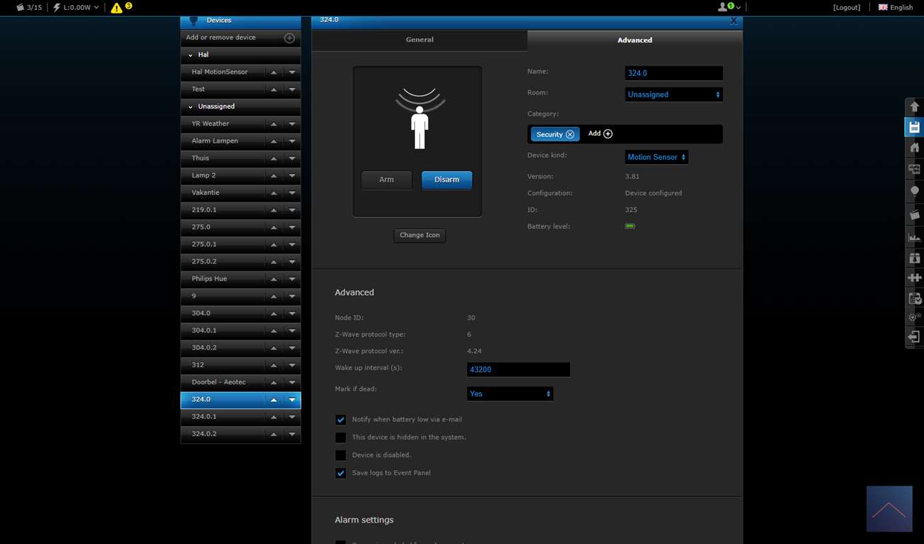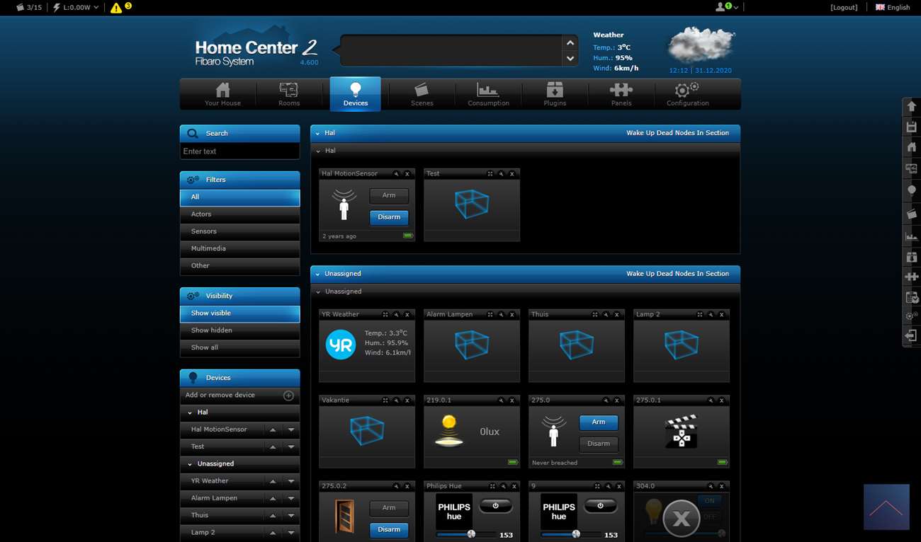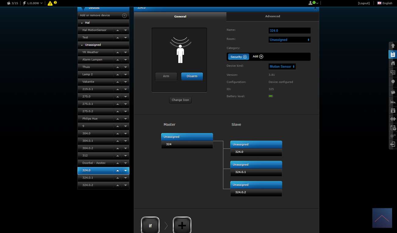 Now remove the tab from the battery and press the button on the inside 3x. After this he was added to the HC2. I get a message that no template is available yet. Despite this, I can see the movements, brightness and temperature neatly on the dashboard.