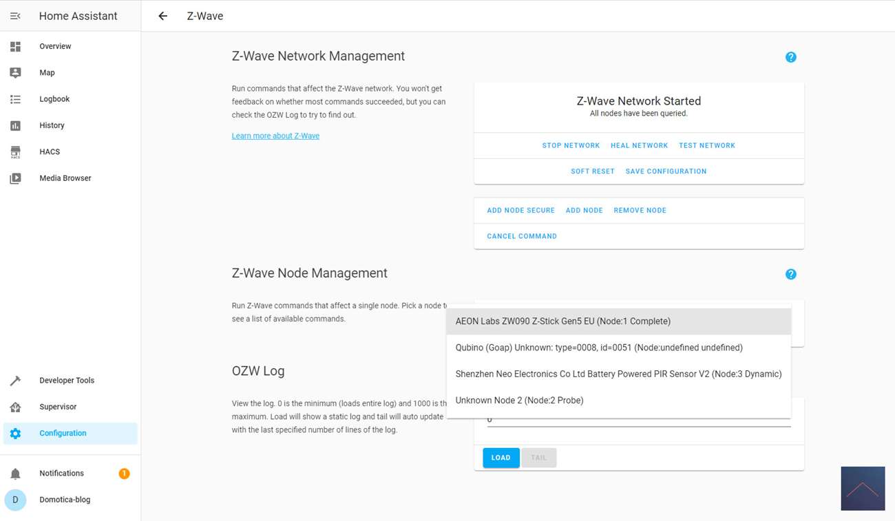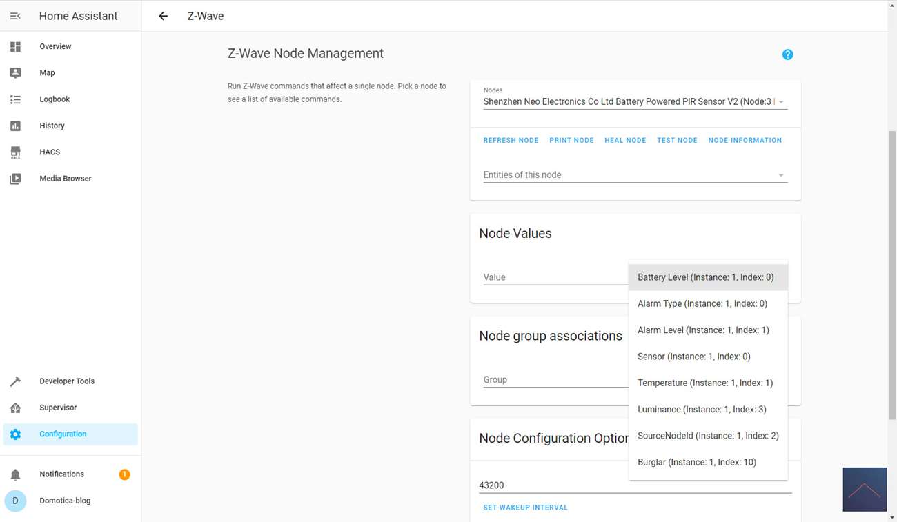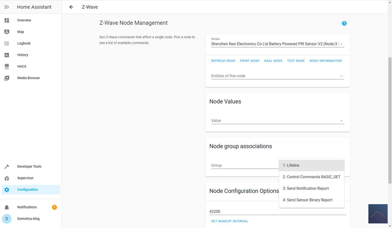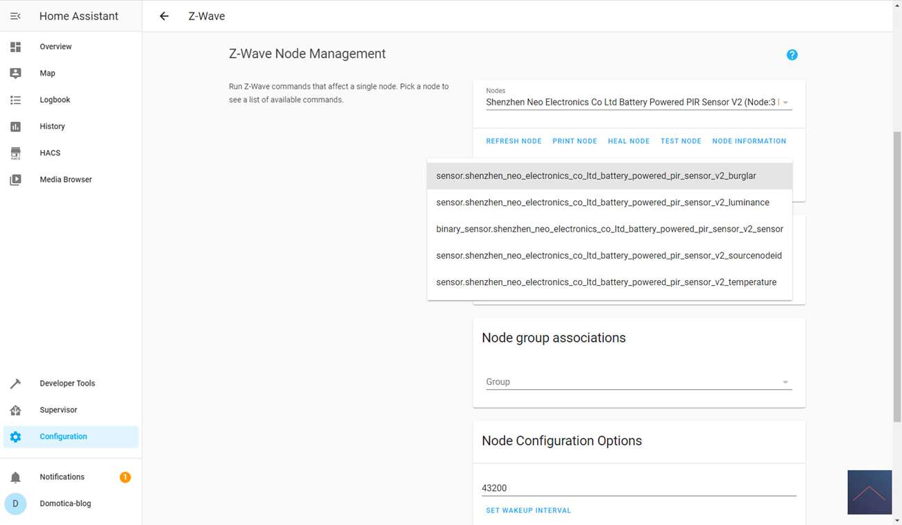 You can start adding by going to the configuration and then clicking on Z-Wave. Then click on "add node secure" to start adding. HASS gives a very brief notification that the addition has started. After this you have to make sure that the add mode is also started on the sensor. You can do this by quickly pressing the "B" button on the module 3x at the back. To do this, first remove the back and then the tab near the battery.