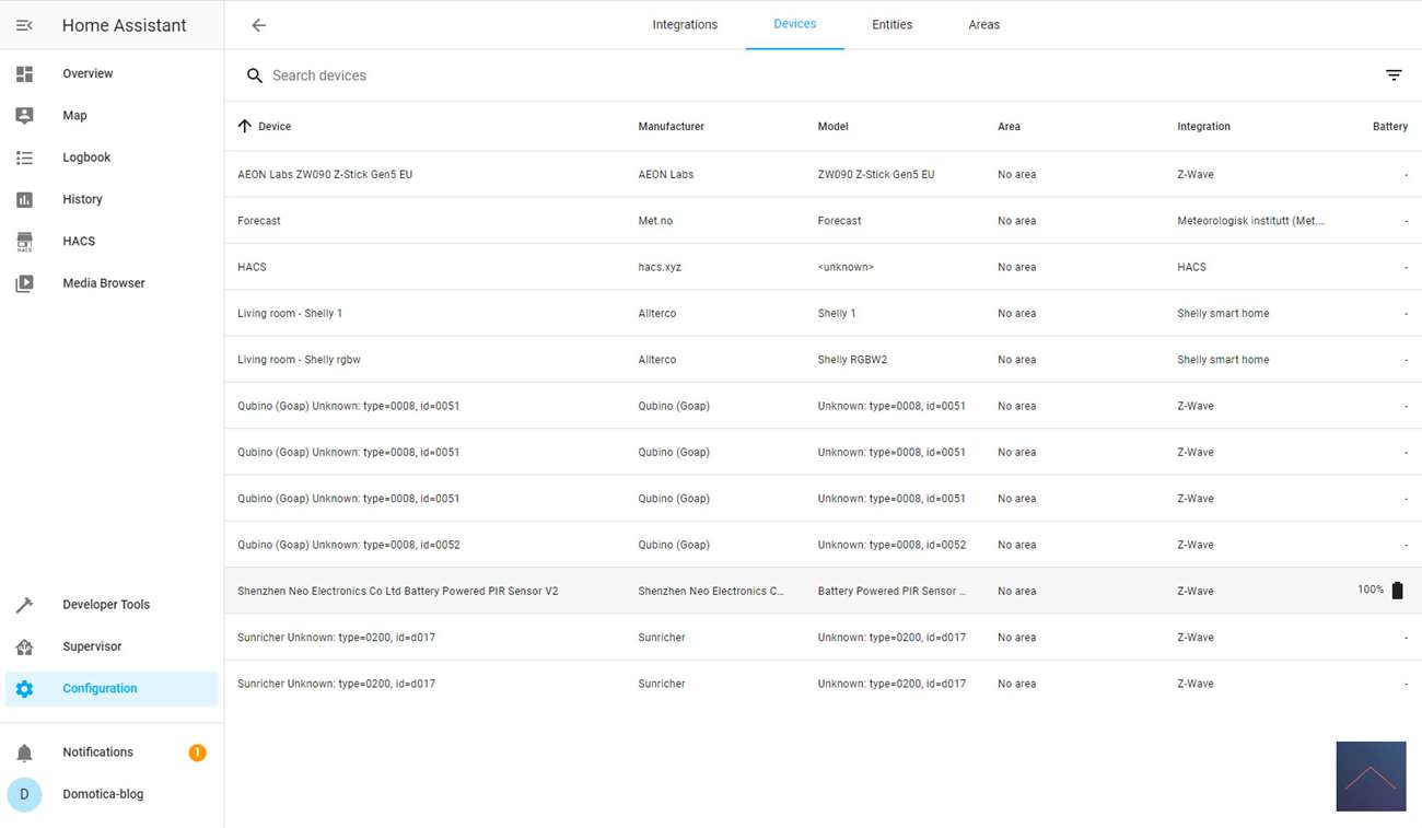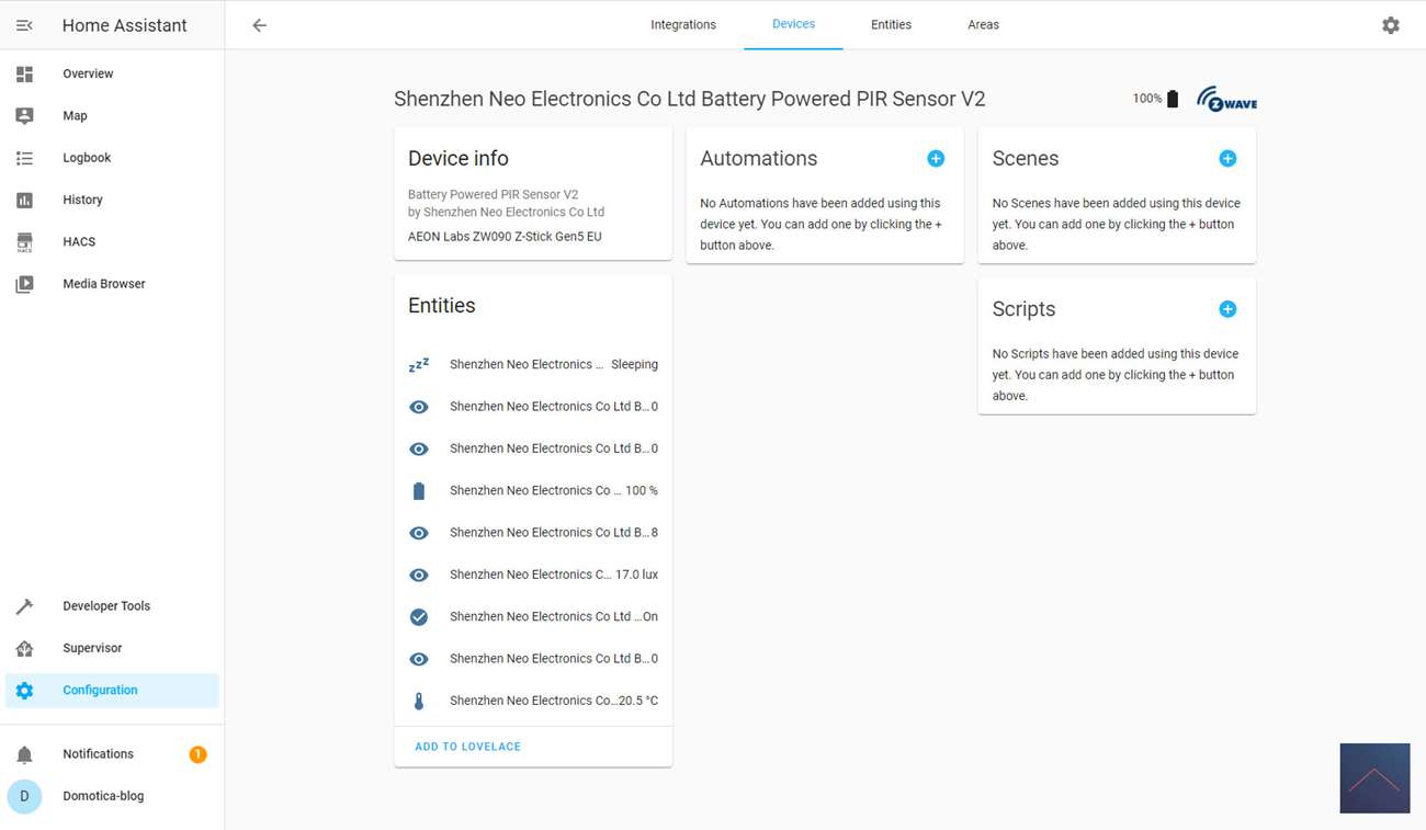 When I look after a few seconds, I see a motion, temperature and lux sensor on my devices. Completely complete and it also works when I put my hand in front of the sensor. I also see the parameters appear neatly. This allows you to arrange a number of things on the module itself. Handy that this is all there.