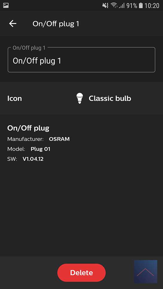 We also have an Osram power switch and this also works via the Zigbee protocol, with which you can switch the power supply to, for example, a lamp on or off. But of course you can also connect other devices and put them in a routine. Adding the Osram power switch goes well in 1 time. You add it by going to the Accessory setup in the App and holding the power button on the switch: