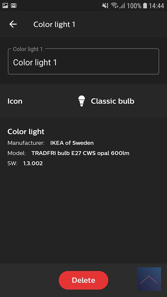 We are going to add the Ikea Tradfri lamp and these also work via the Zigbee protocol. The Ikea lamp is a cheaper alternative and good to use without the need for the Ikea controller. You can add the Ikea lamp by switching it off and on three times. You will then see that the lamp turns on and off again and is in setup mode. The Bridge did not find it the first time, but after the second search and putting the lamp in setup mode, the Bridge adds it nicely: