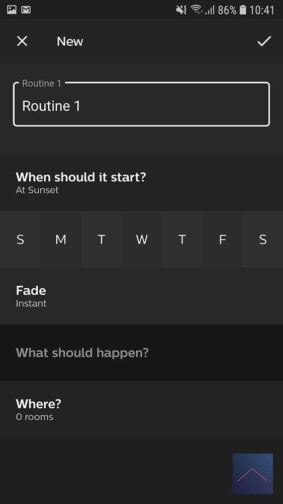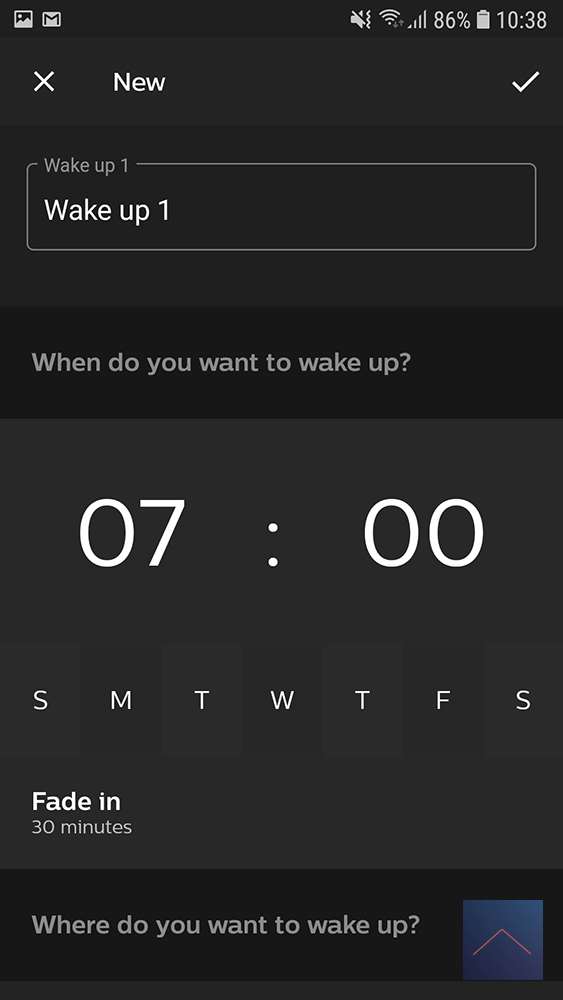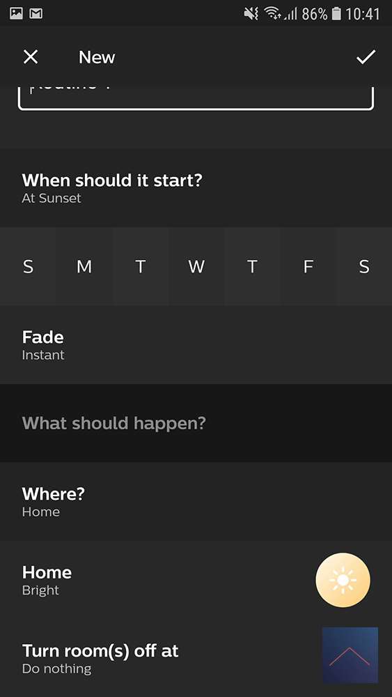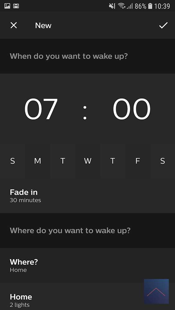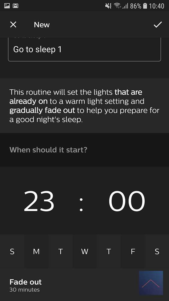 With the Wake up routine you can create a nice wake up scenario. The light flows smoothly to a certain strength. So wake up wonderfully like people do with a wake-up light. You indicate what time this should start, which days of the week and how long it should take before your light is completely on.