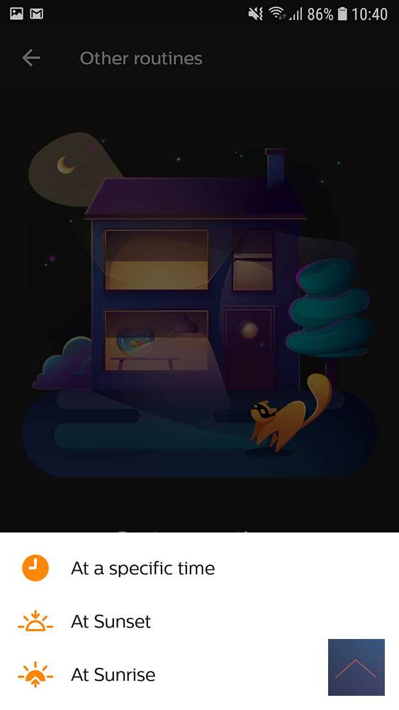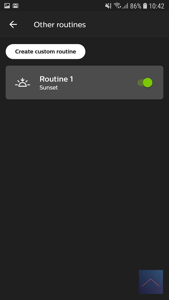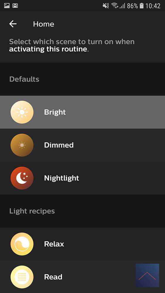 With Routines it is possible to make rules / automate things. Without this possibility you actually have only a simple on and off system. The Philips Hue Bridge 2.0 has 5 standard routines; Home & Away, Wake up, Go to sleep, Other routines and Timers. There is also an option to use a routine from other Apps (Other apps).