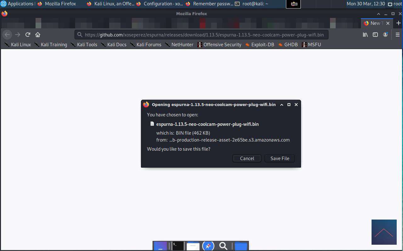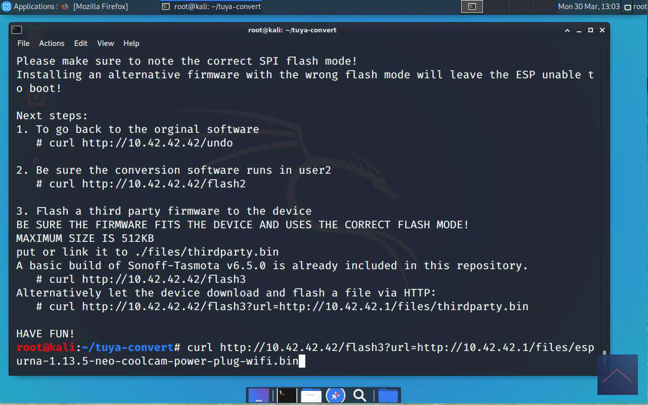 When finished, download the following file “https://github.com/xoseperez/espurna/releases/download/1.13.5/espurna-1.13.5-neo-coolcam-power-plug-wifi.bin” in the browser and copy it to the folder “tuya-convert”.