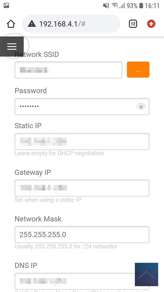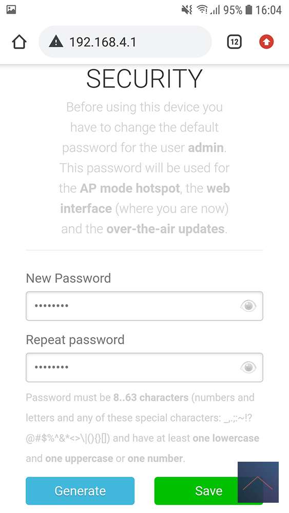 The password is “fibonacci” and then you open a webpage and type 192.168.4.1, after that you have to change your password. After this, you will have to log in to WiFi again with your new password. Go to 192.168.4.1 and put in your WIFI network. It is useful to take a static IP, so that you can immediately access it on your own network. Reboot and you can find it on your network. That's it.