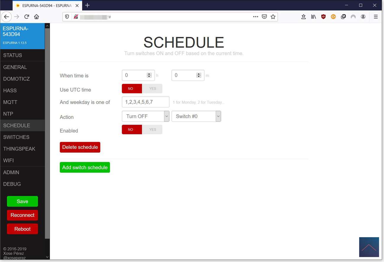 Schedule - Here you can create time schedules to turn on and off.