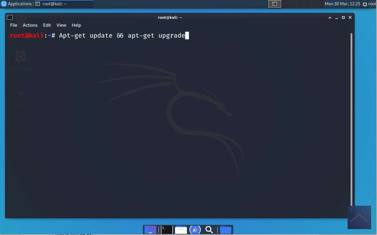 If you have the Raspberry Pi Kali running, open the terminal emulator and first make sure everything is up to date via the following instruction: