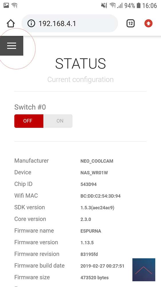 Now we can start to get the application from grithub, more information you can read at https://github.com/xoseperez/espurna/wiki/Hardware-NEO-COOLCAM-NAS-WR01W