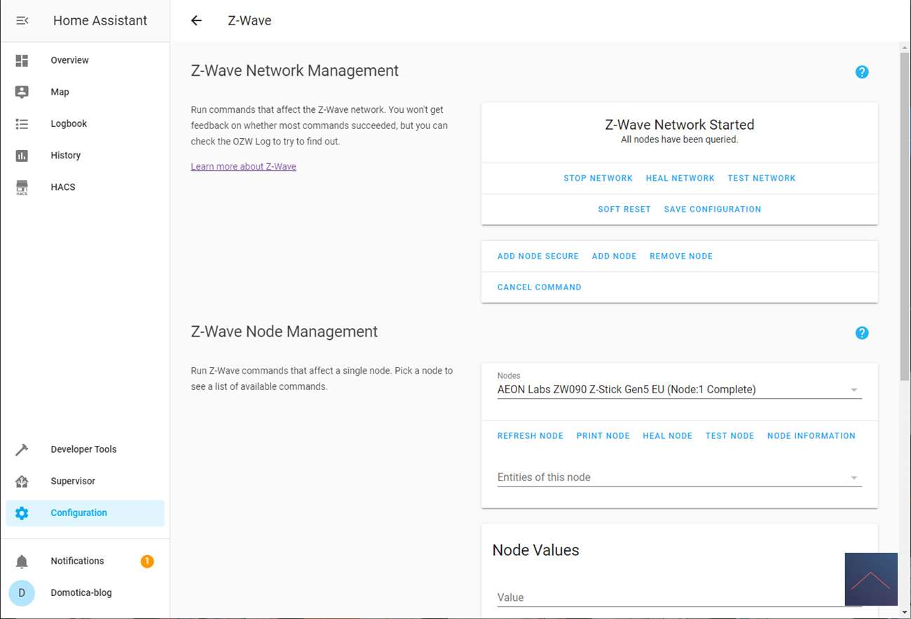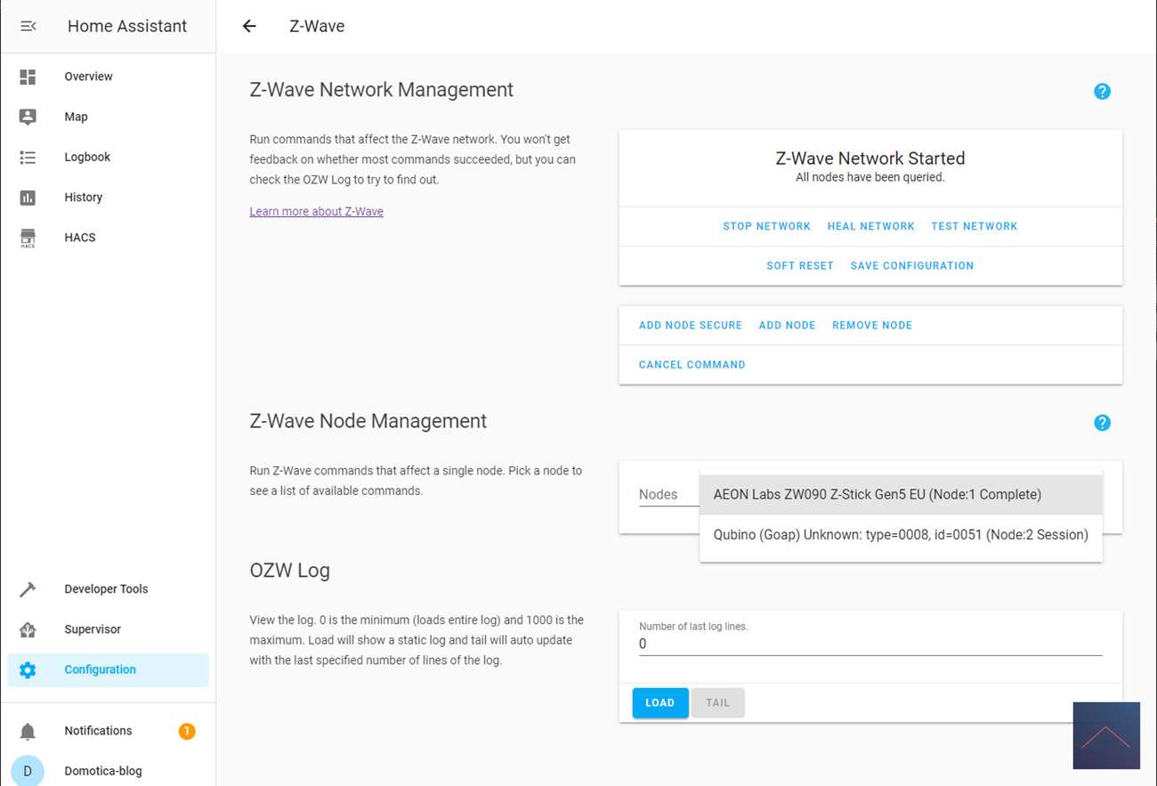 Now that we have done the installation, we log in to Hass via your browser and go to your configuration and then to Z-Wave. Then click on "add node secure" to start adding. Now we also have to activate this on the Luxy.