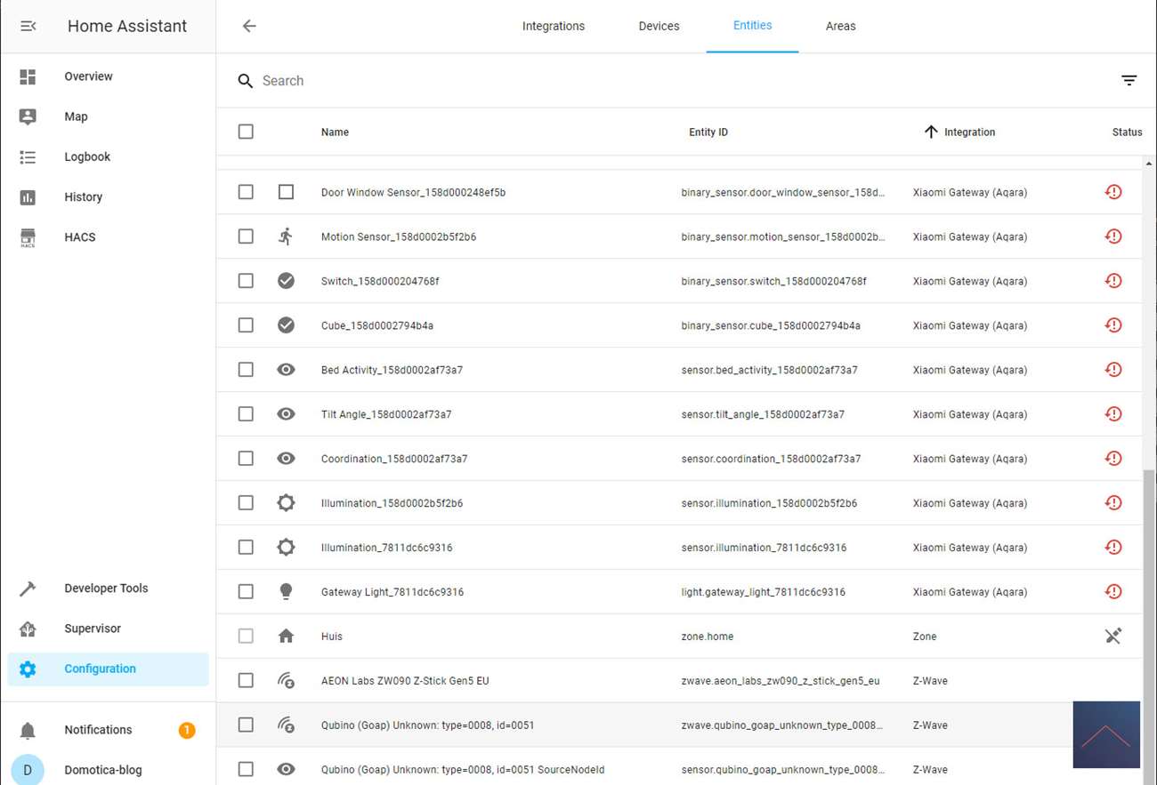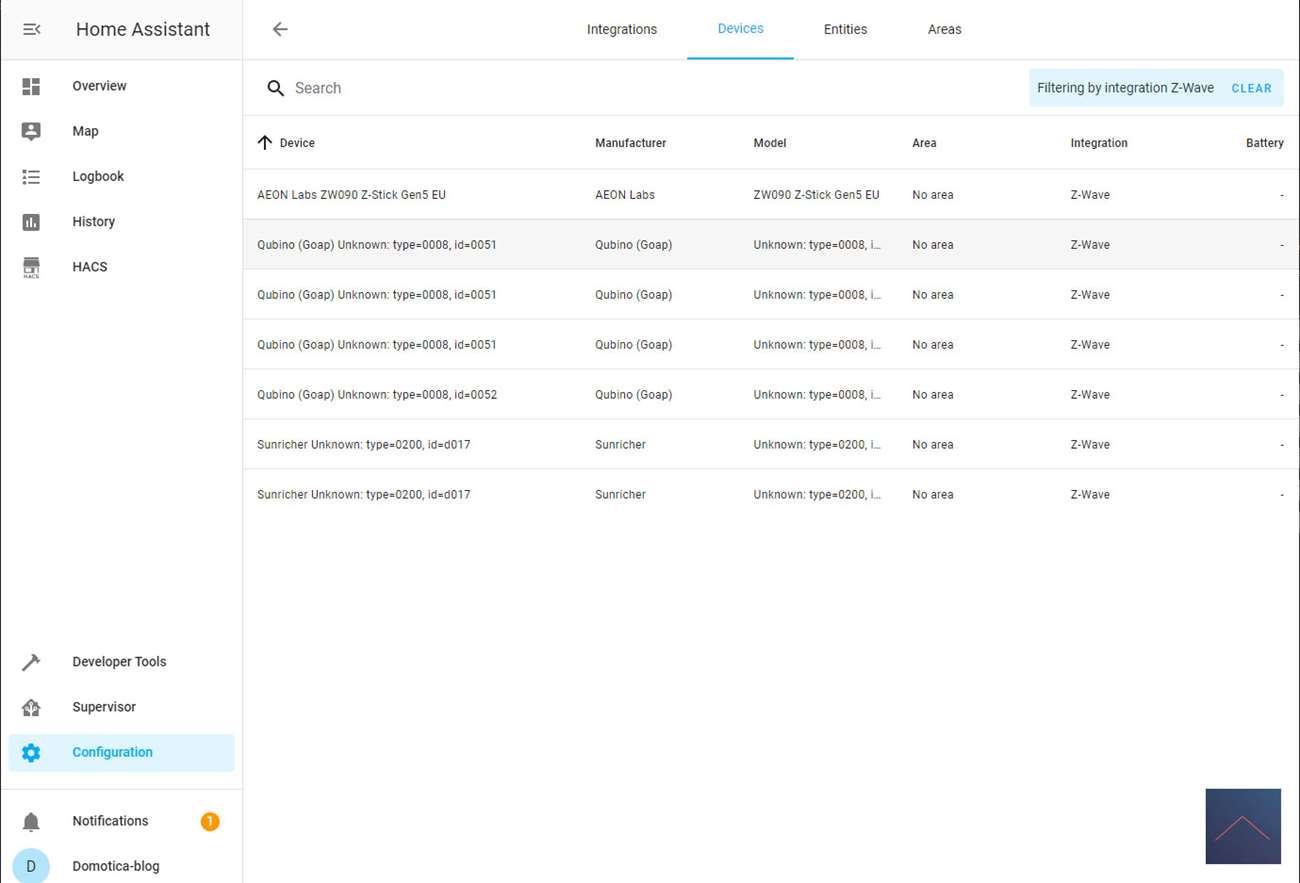You can do this as follows: 1x right click (2) and 1x under click (3). The LED will now go into "white mode", now we can hold the right button (4 > 9 sec) to actually start adding. As usual we don't see anything changing in HASS, but when I look at the devices, I see a Qubino Unknow. That does not bode well and this is true because I cannot operate it.