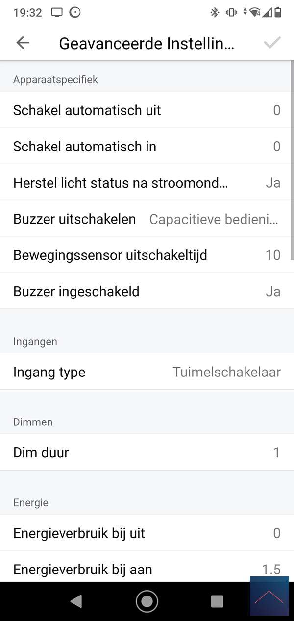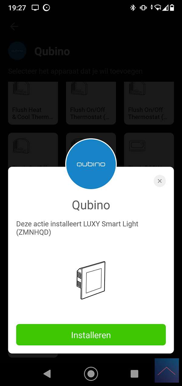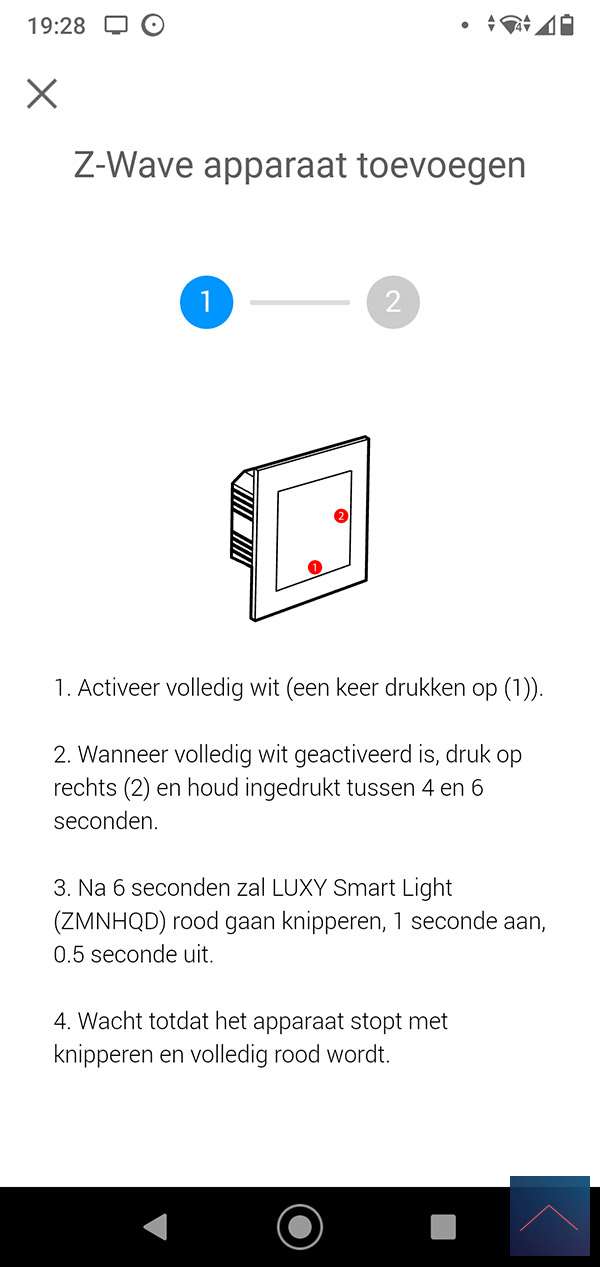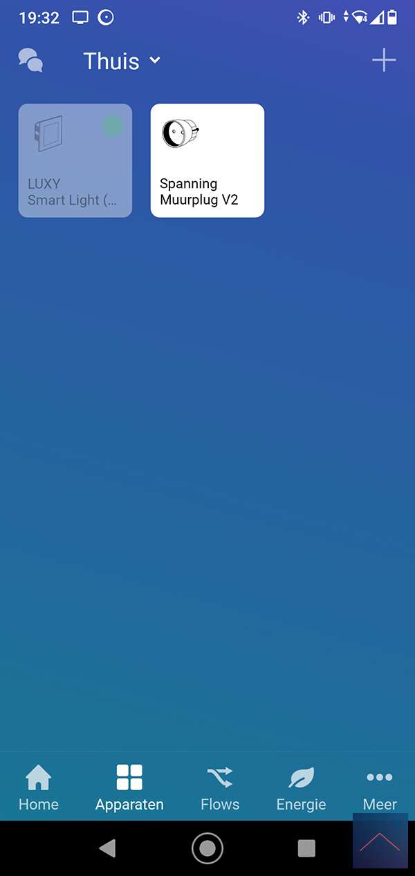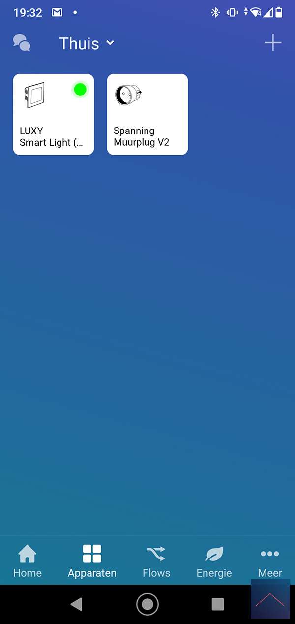When he does, we can log in to the Homey and go to your devices. Then press the plus sign and find the Luxy. You will probably have to install the APP first, after which you will be asked to reset / remove the Luxy. You can do this by pressing 1x right and 1x at the bottom on the panel of the luxy. The "White mode" will now be started, then keep the right button pressed for 4 to 9 seconds. When you release it, the LED will flash red and then light up. I also see in the Homey APP that it has been reset. Now we repeat the whole story again to actually add it. The LED will now light up green.