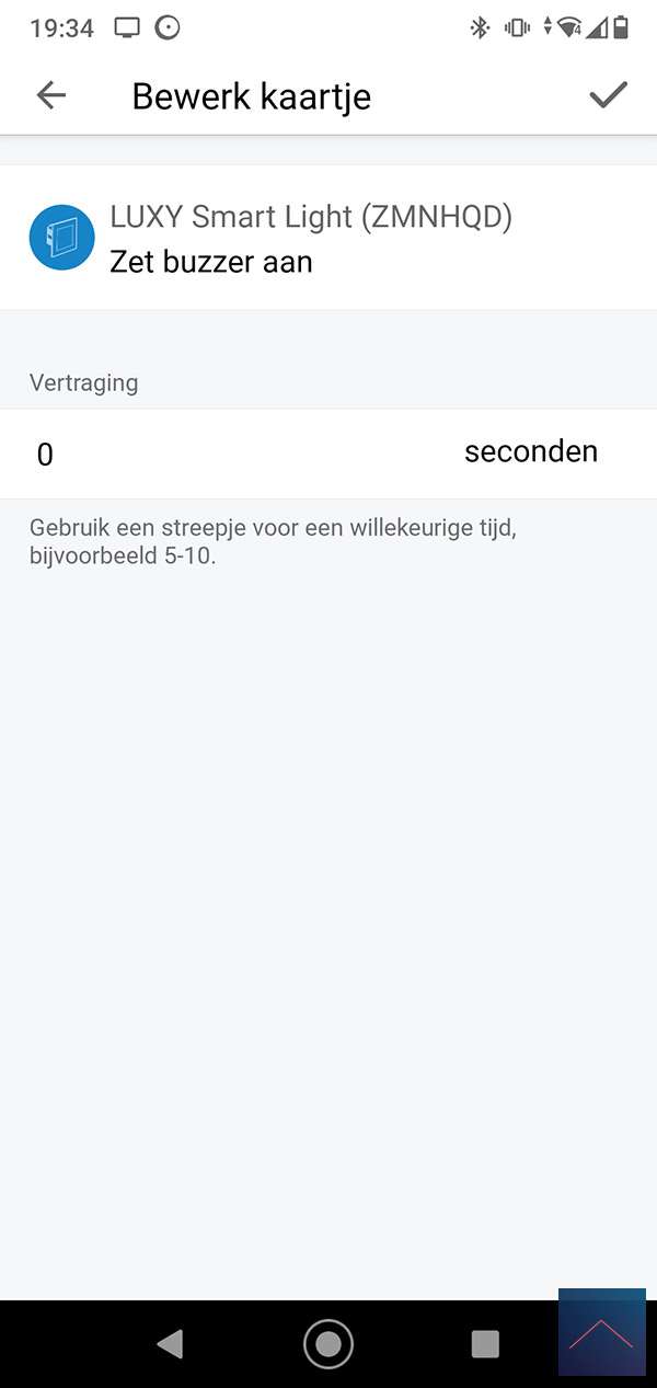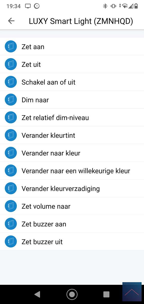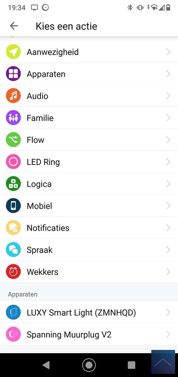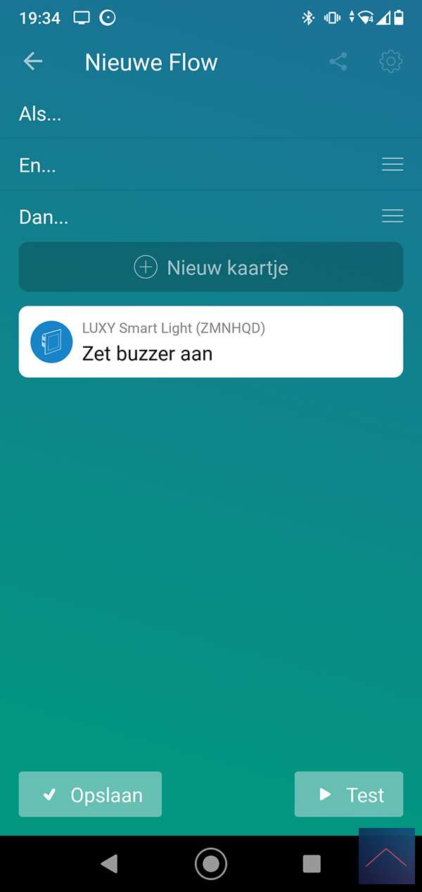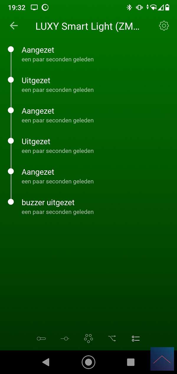 When he does, we can log in to the Homey and go to your devices. Then press the plus sign and find the Luxy. You will probably have to install the APP first, after which you will be asked to reset / remove the Luxy. You can do this by pressing 1x right and 1x at the bottom on the panel of the luxy. The "White mode" will now be started, then keep the right button pressed for 4 to 9 seconds. When you release it, the LED will flash red and then light up. I also see in the Homey APP that it has been reset. Now we repeat the whole story again to actually add it. The LED will now light up green.