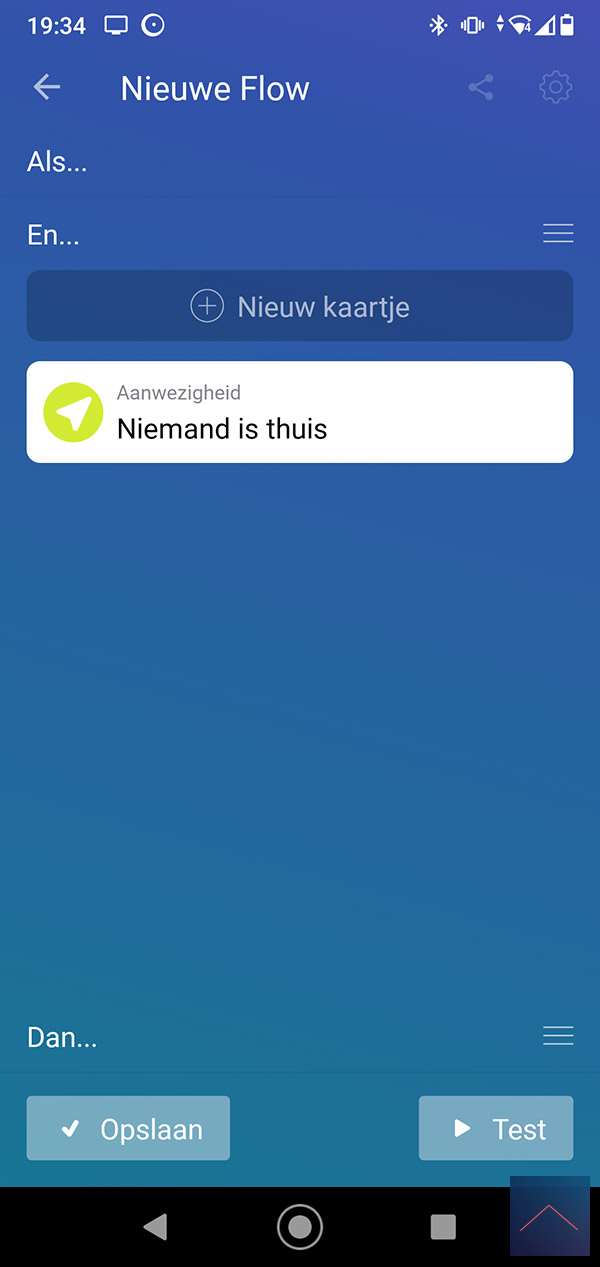 As an example, we will make a mini alarm system. We use the activity card in the Homey as a trigger. We say if there is activity in the house and we are not at home, the buzzer should go off.
