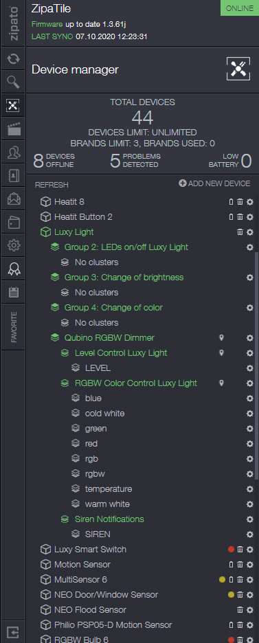 The next controller is the ZipaTile. Zipato always has its support in order, so I expect few problems with this Luxy.