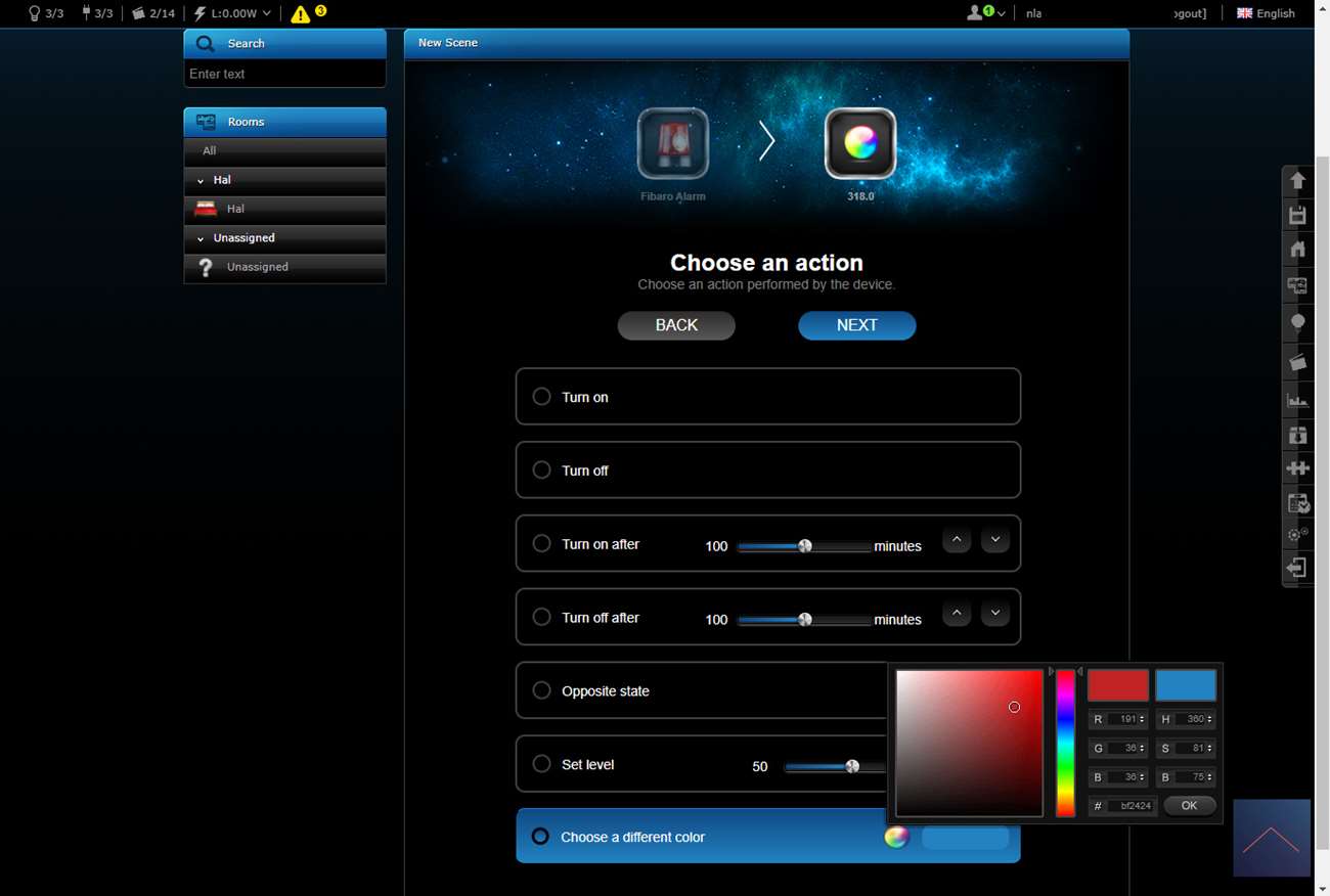 As already mentioned, this smart switch can be easily combined to create an alarm. So as an example set the Luxy to red when the alarm goes off.