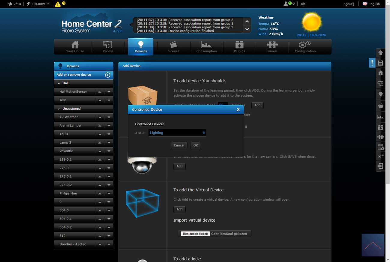 I had to do this a few times but eventually it was added to the HC2. When I look at my devices I see an on/off switch, the total consumption and the current consumption. I also get 2x an RGBW controller for controlling the LED. This is because the configuration of the Luxy is not properly configured, because the "Lifeline" is not set correctly. As a result, the status is not updated properly when you operate it manually.
