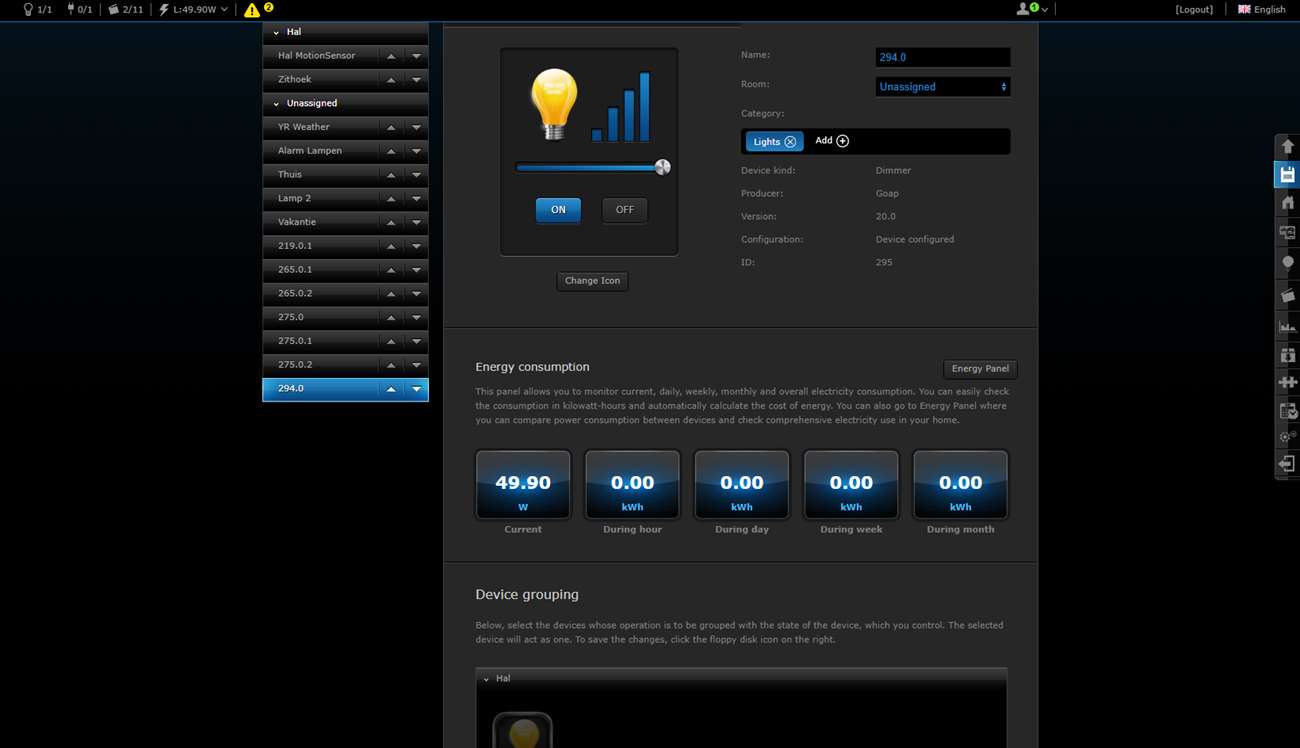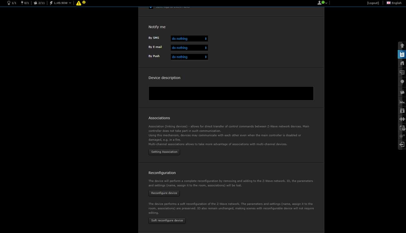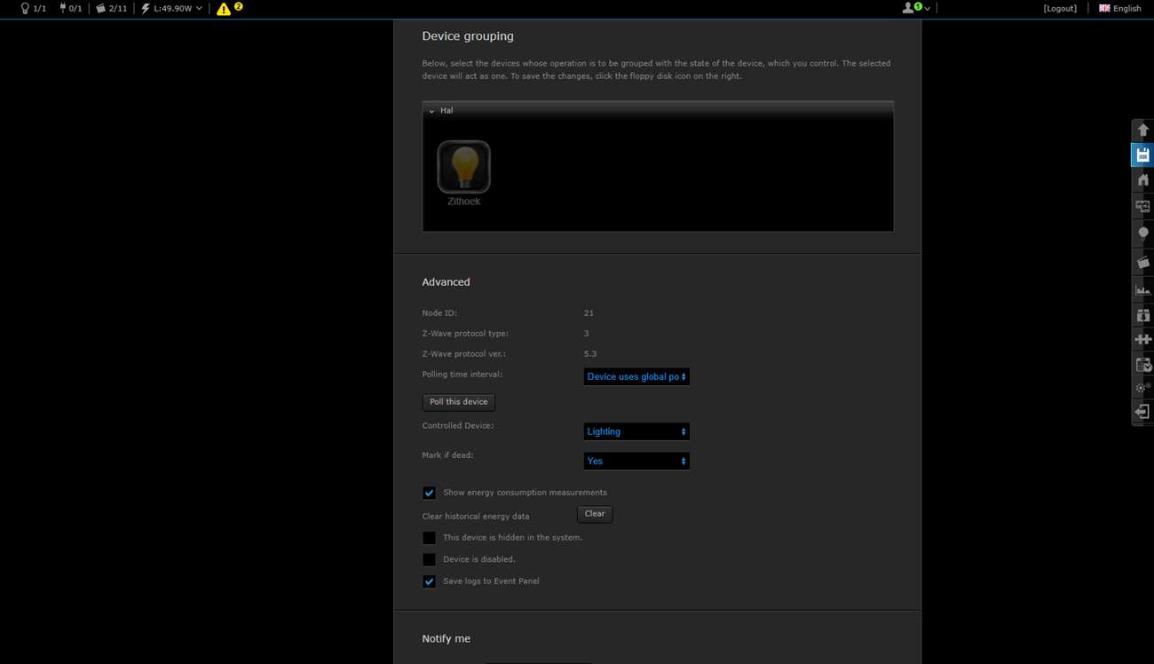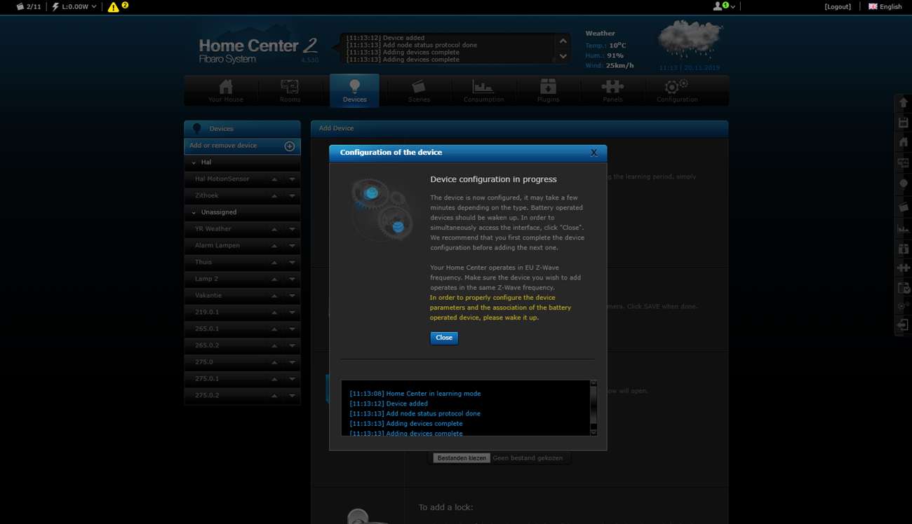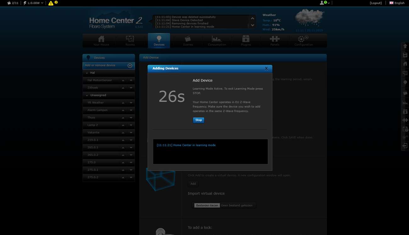 Wait a while before turning the power back on. It is better to first log in to the HC2 and go to your devices. You then click on "add". Then you provide the dimmer with power. In my case, he was found immediately. The dimmer indicates that the addition has started when the LED lights up blue. It will then light up red and then green.