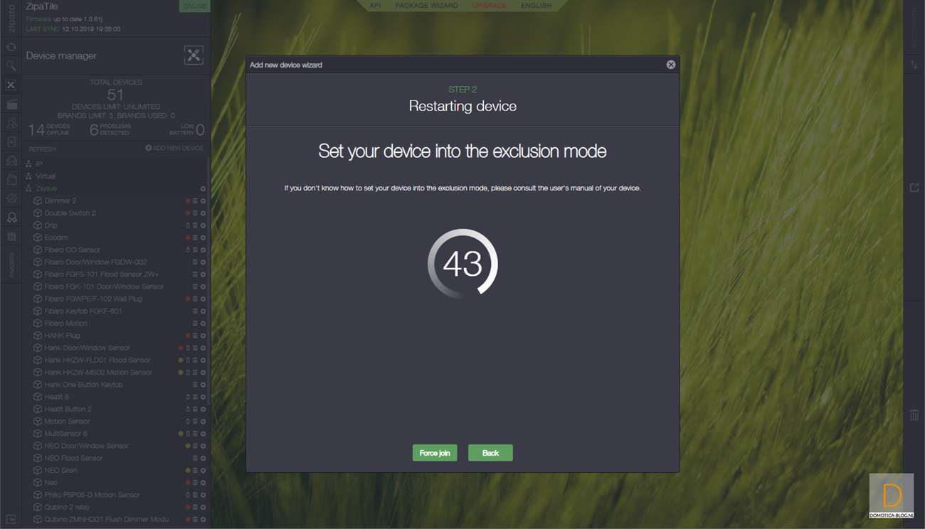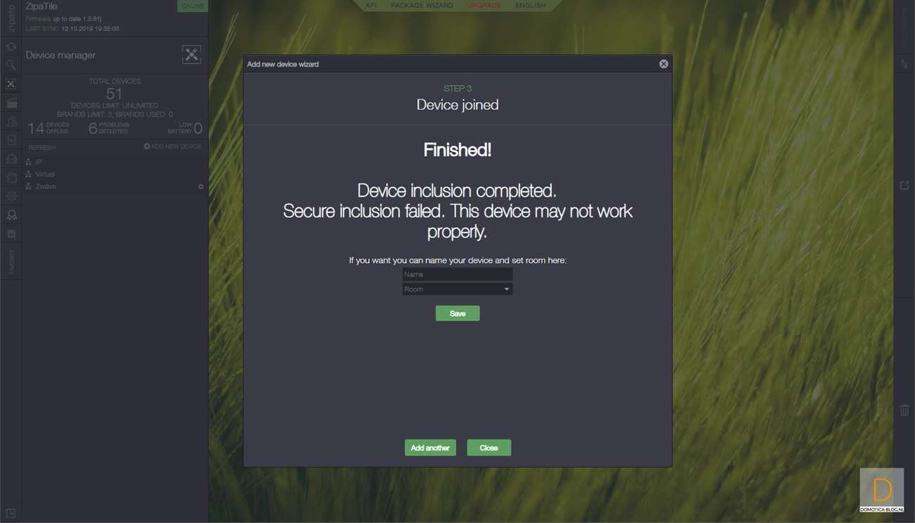 Log in first on the Zipatile and go to your devices. Then click on "add new device" and then on Z-Wave. The Zipatile will first remove the module (reset) and then add it. To start this you provide the dimmer with power. He was found and reset. After this he should add him but this did not happen. To start this you just have to remove the power and bring it back. Then click 3x on the wall switch. He was then added.